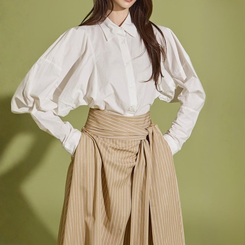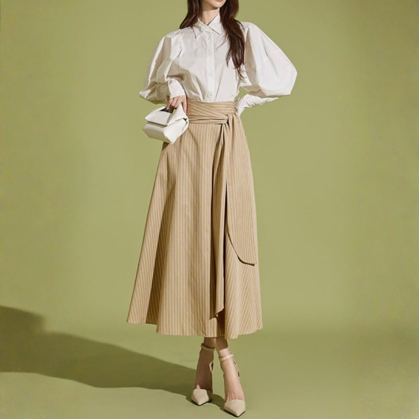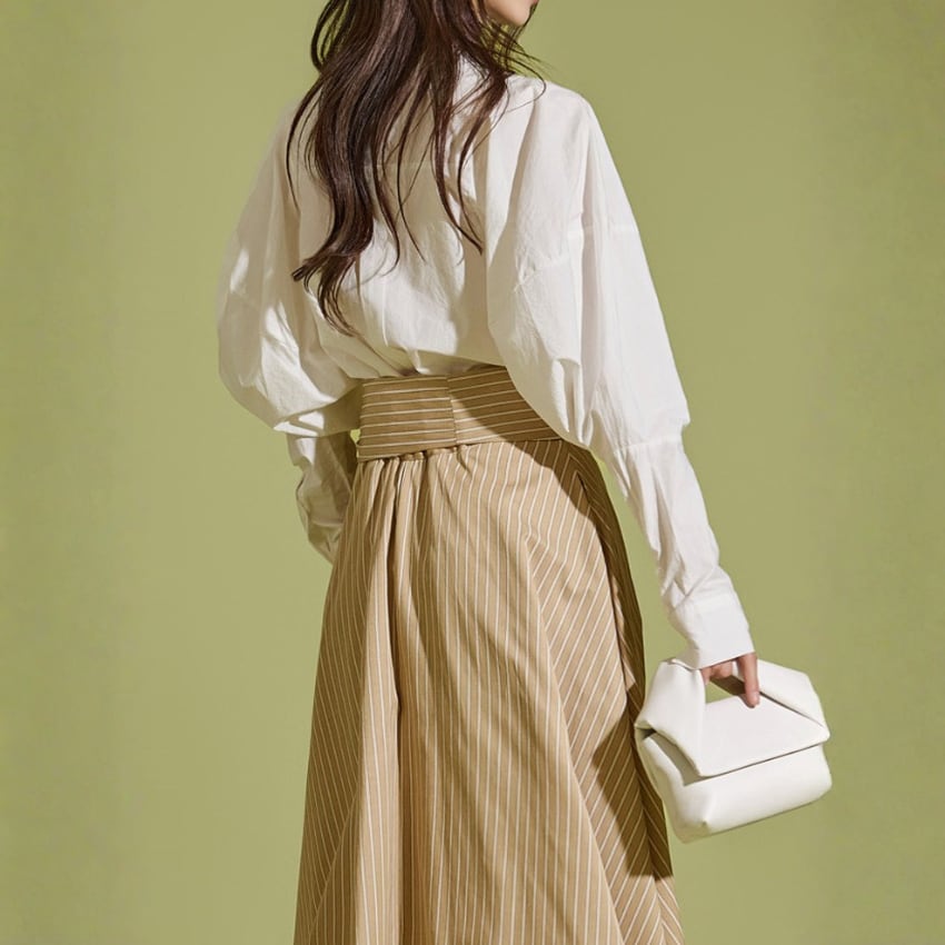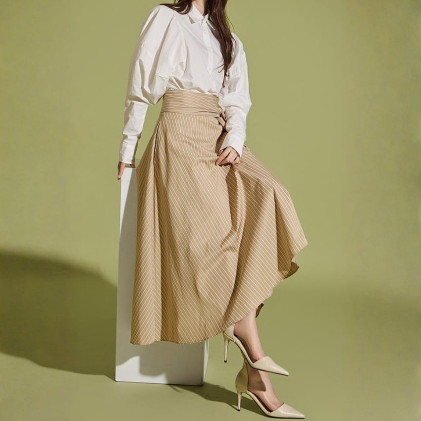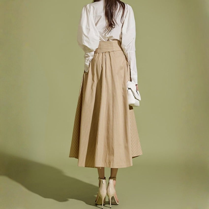 新スタイルハイウエストストライプミドル丈Aラインフレアスカート (2Colors) BM1348