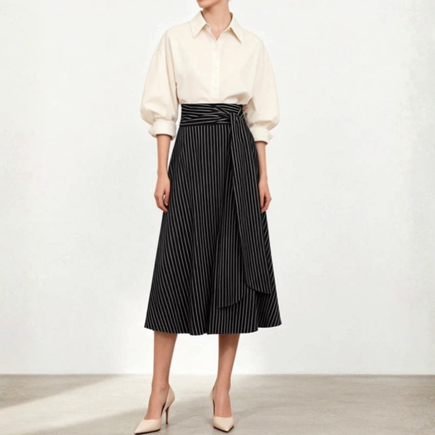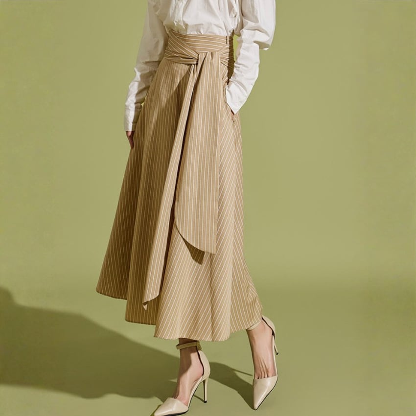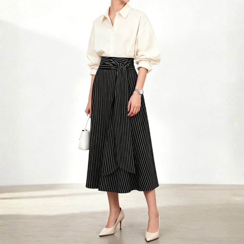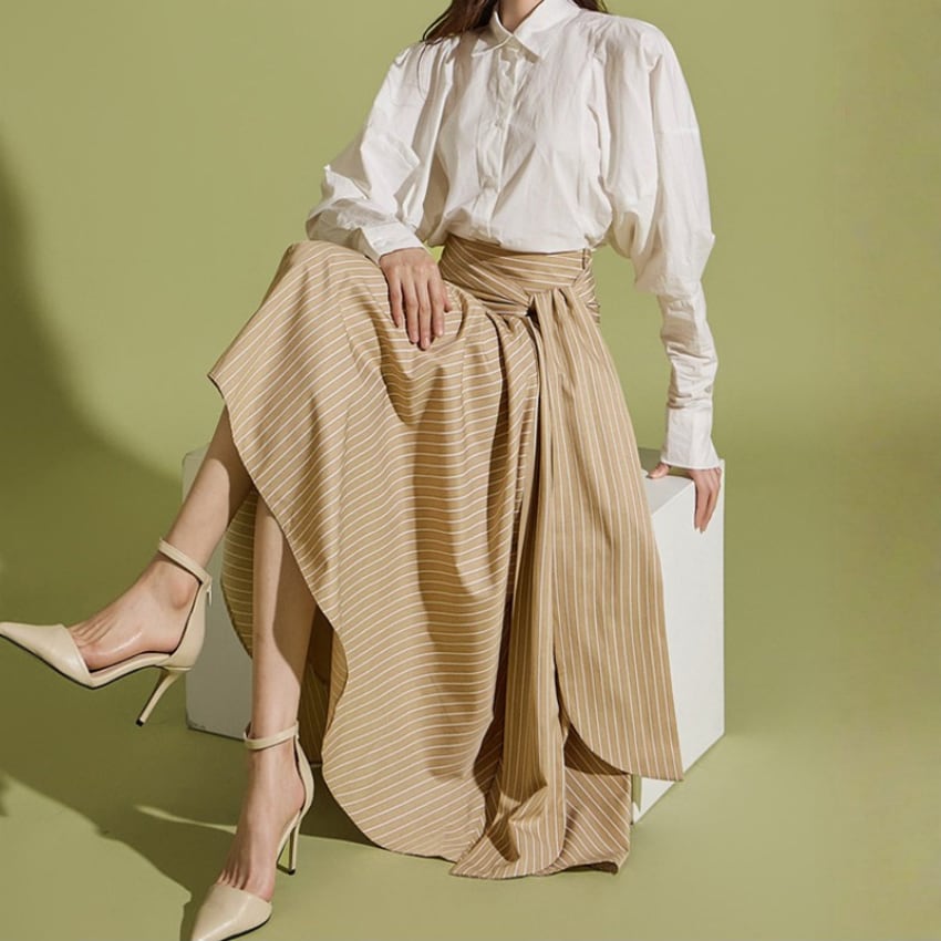 新スタイルハイウエストストライプミドル丈Aラインフレアスカートは、絶妙なシルエットを描くアイテムです。ハイウエストのデザインがスタイルアップを実現し、ミドル丈のAラインが優雅な動きを演出します。ストライプ柄があなたの魅力を引き立て、シーンを選ばず活躍すること間違いなし。ベージュとブラックの2色展開で、おしゃれなコーディネートを楽しむことができるスカートです。ぜひ、こちらの特別なスカートで個性を引き立てていただければと思います。