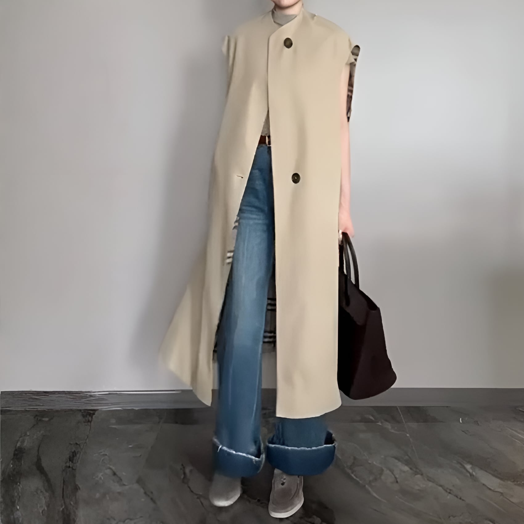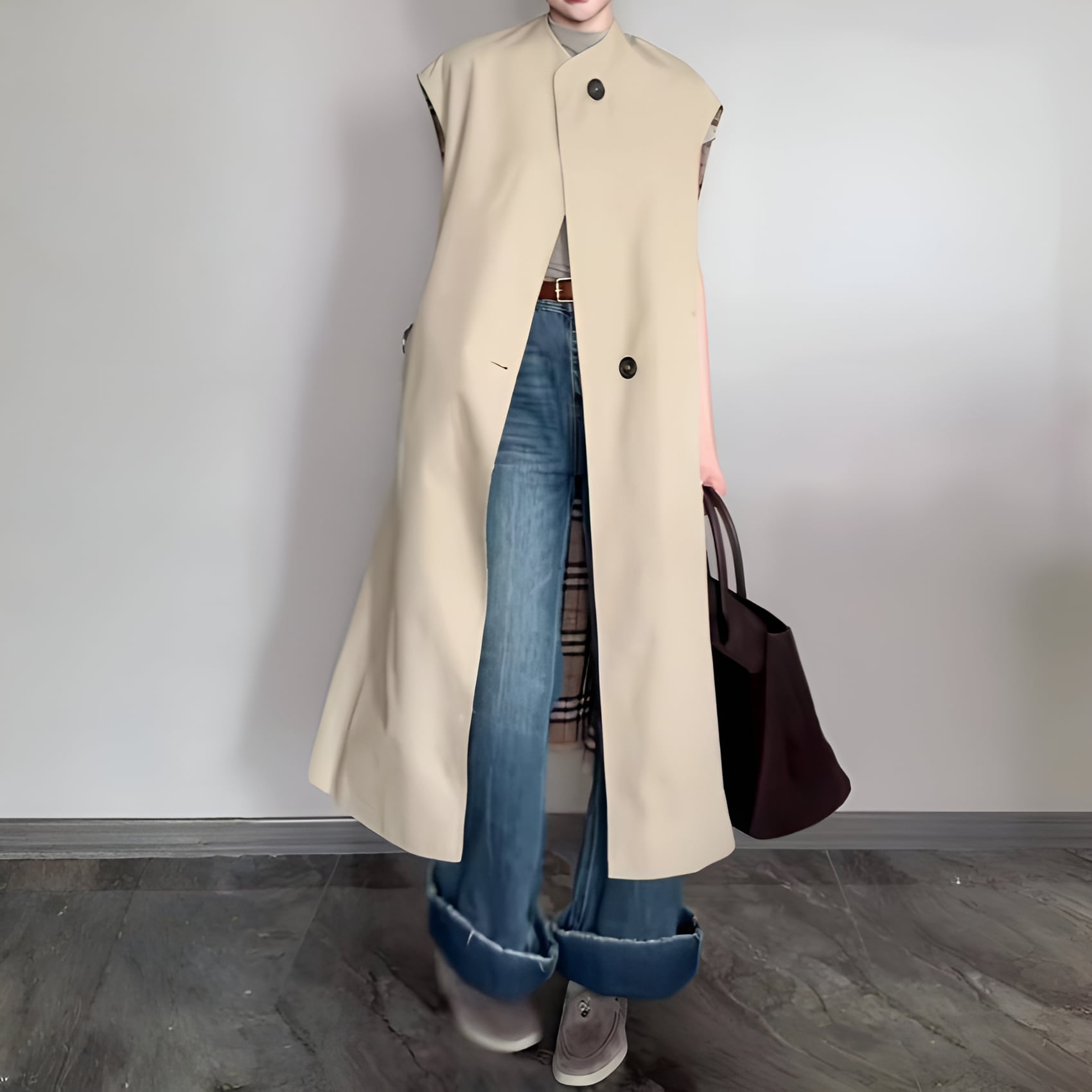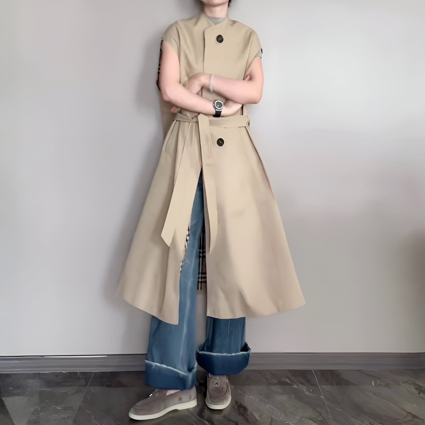 2026春コレクションのヨーロピアンスタイルミドル丈ベストトレンチコート(カーキ)は、エレガントな雰囲気を醸し出し、季節の変わり目にぴったりなアイテムです。ミドル丈のデザインが、全体のシルエットを美しくまとめ上げてくれます。表面はシワになりにくく、こだわりの裏地素材を使用したトレンチコートは、軽やかでありながらも耐久性があり、日常使いから特別なシーンまで幅広く活躍することでしょう。この春、おしゃれを楽しむためのマストアイテムとして、ぜひワードローブに迎えていただきたいコートです。