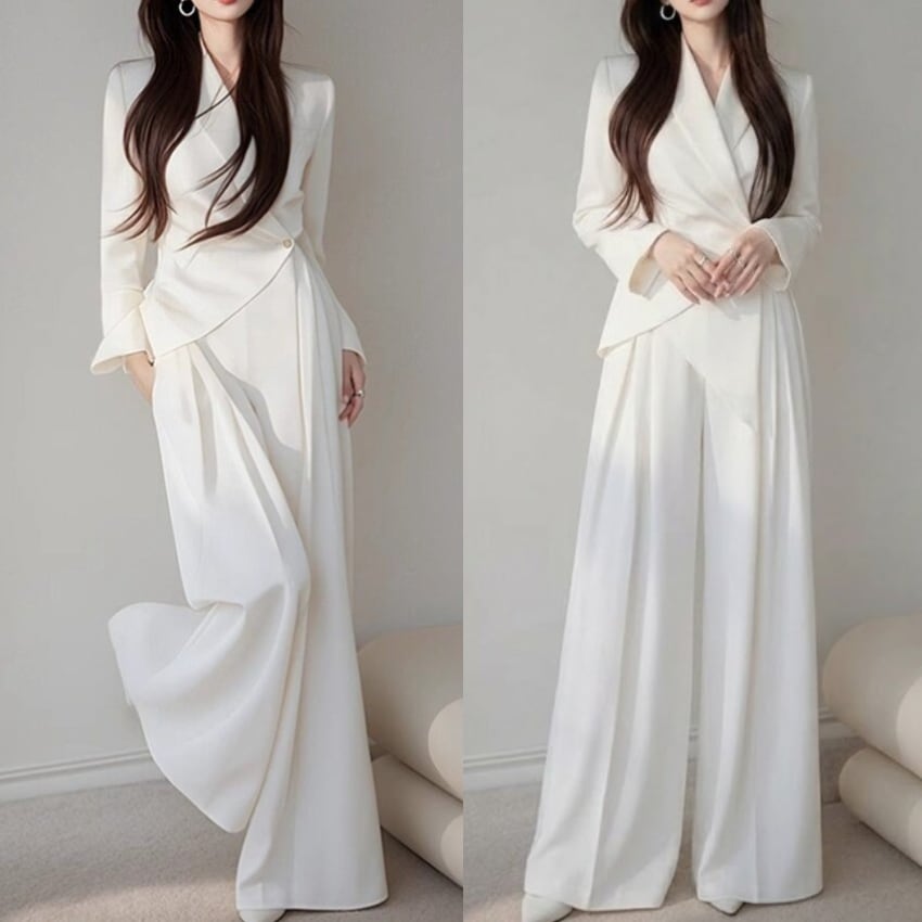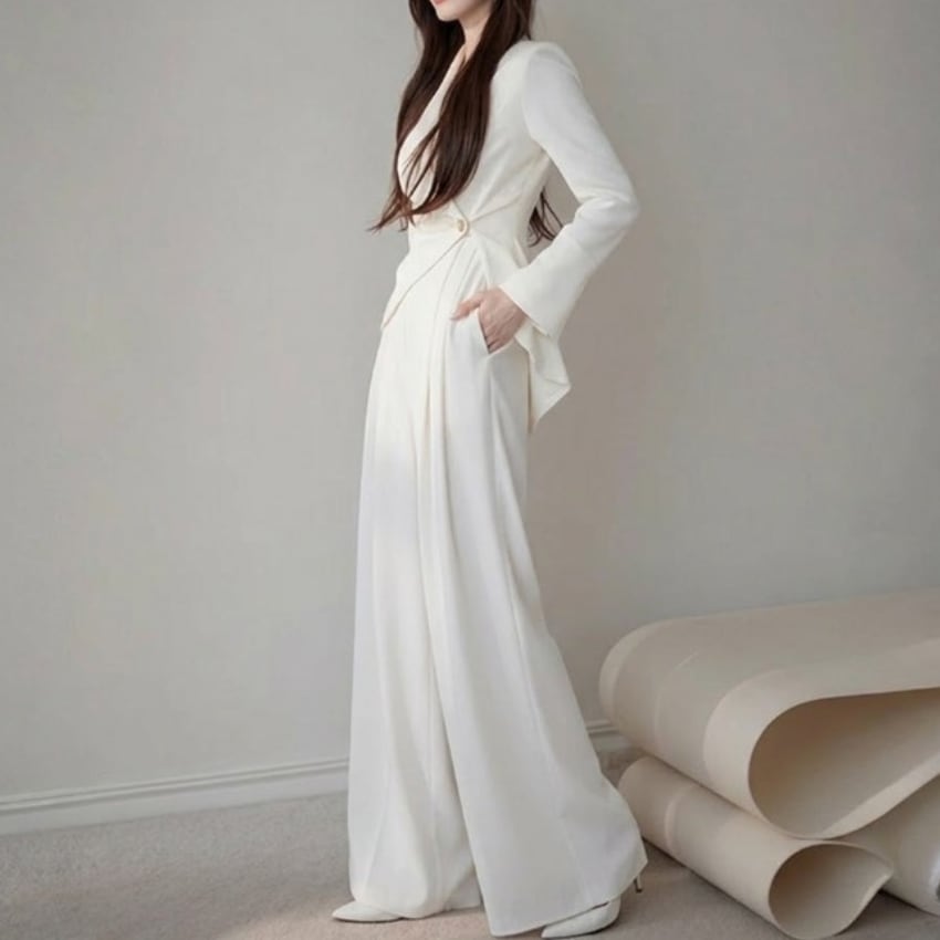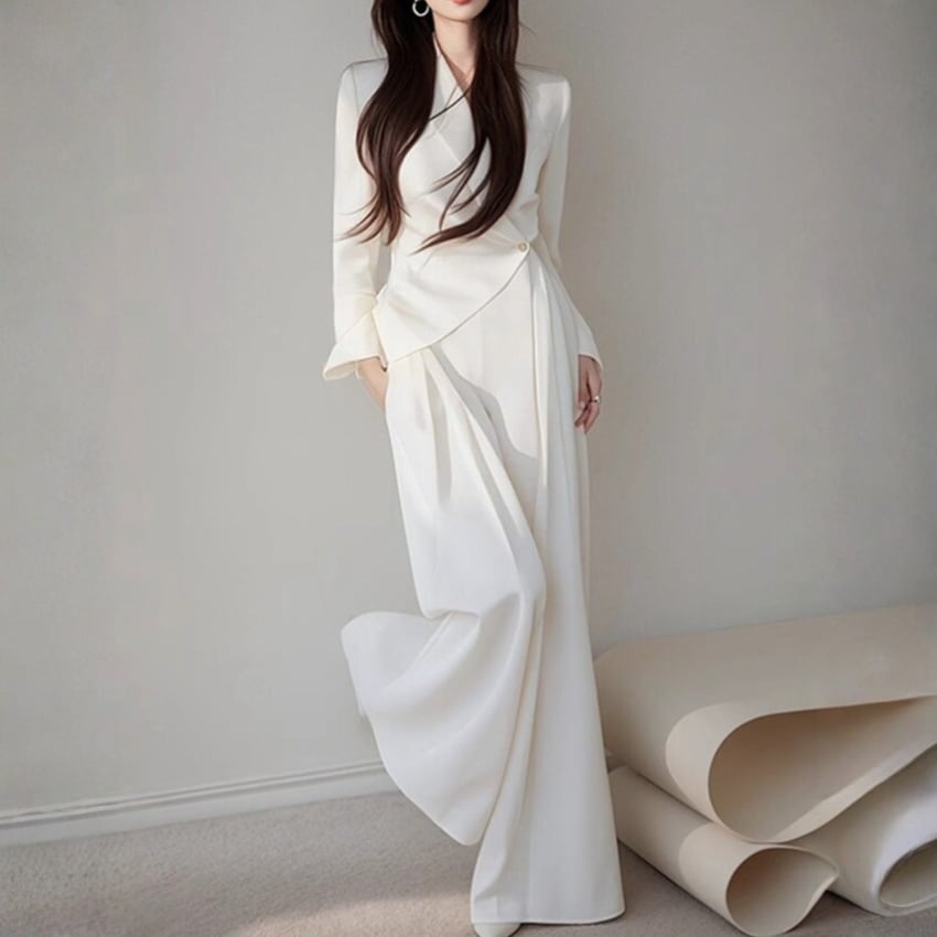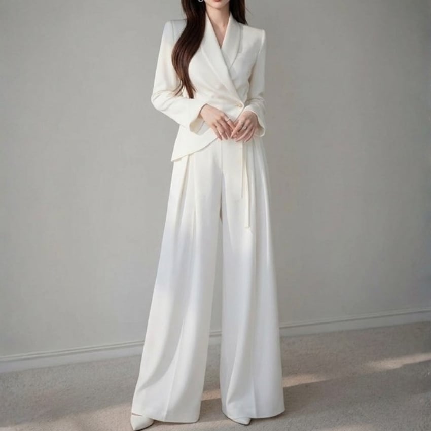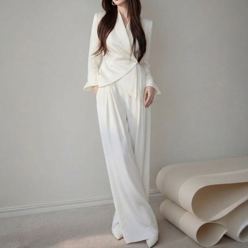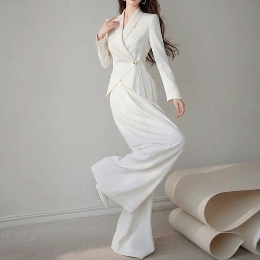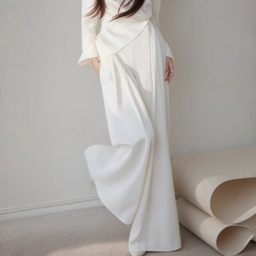 シック&エレガントワイドレッグパンツセットアップは、その名の通り、シックでエレガントな印象を漂わせるホワイトカラーのアイテムです。ワイドレッグのパンツと共に設計されたこちらのセットアップは、洗練されたシルエットを持ちながらも、快適な着心地を実現。オフィスカジュアルから特別なシーンまで、幅広くご利用いただける万能な一着です。ぜひ、こちらのスタイルであなたの日常に華やかさをプラスしてみてはいかがでしょうか。