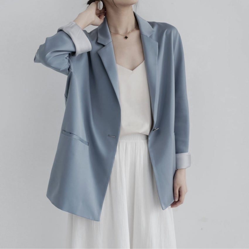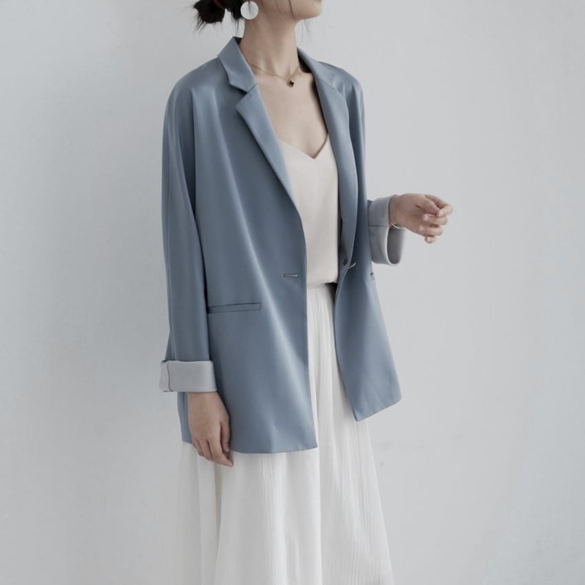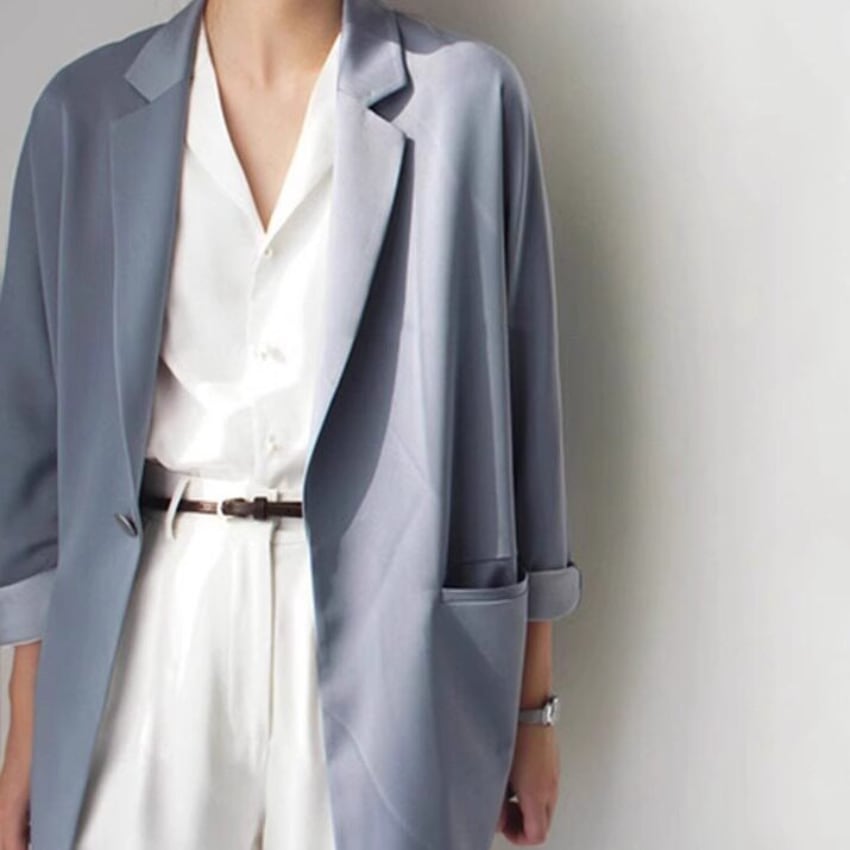 シングルボタンドロップショルダージャケットは、ルーズフィットのデザインで、華奢な印象を与えるヘイズブルーのアイテムです。ドロップショルダーのスタイルがリラックス感を演出し、カジュアルながらも洗練された印象を実現します。デニムやスカートとの相性が良く、普段使いからちょっとしたお出かけまで幅広く活躍します。ぜひ、こちらのジャケットをコーディネートに取り入れて、あなたのスタイルを一層引き立ててみませんか。