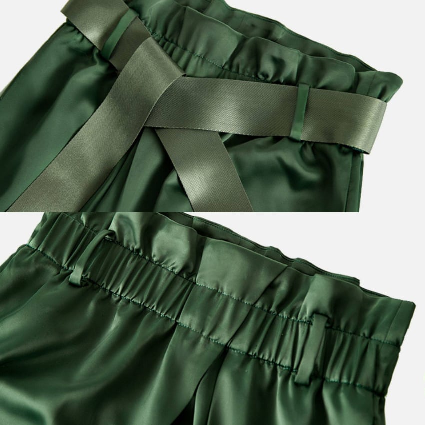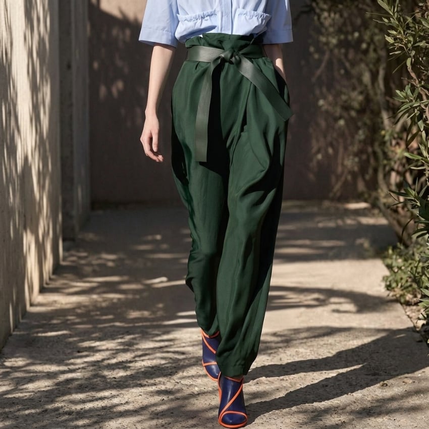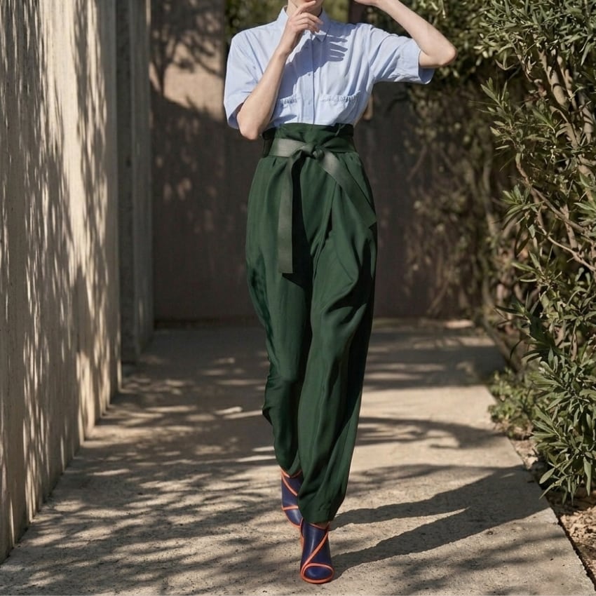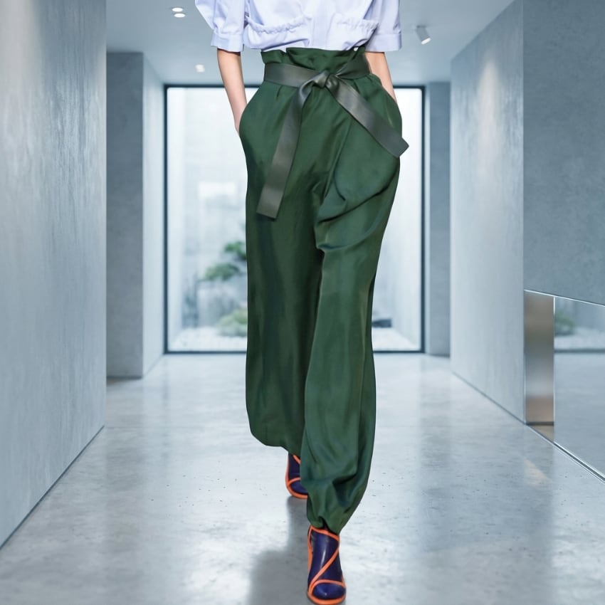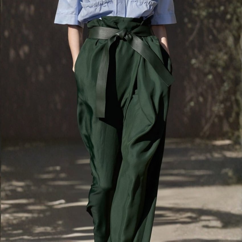 ウエスリボンフルレングスワイドパンツは、深いグリーンの美しいカラーが魅力のエレガントなアイテムです。リボンのディテールが特徴的で、ウエストを華やかに演出し、スタイルを引き締める効果があります。フルレングスのデザインは、脚長効果を発揮し、あらゆるシーンであなたの魅力を引き立てます。カジュアルな日常使いから特別なお出かけまで、幅広くご活用いただけます。