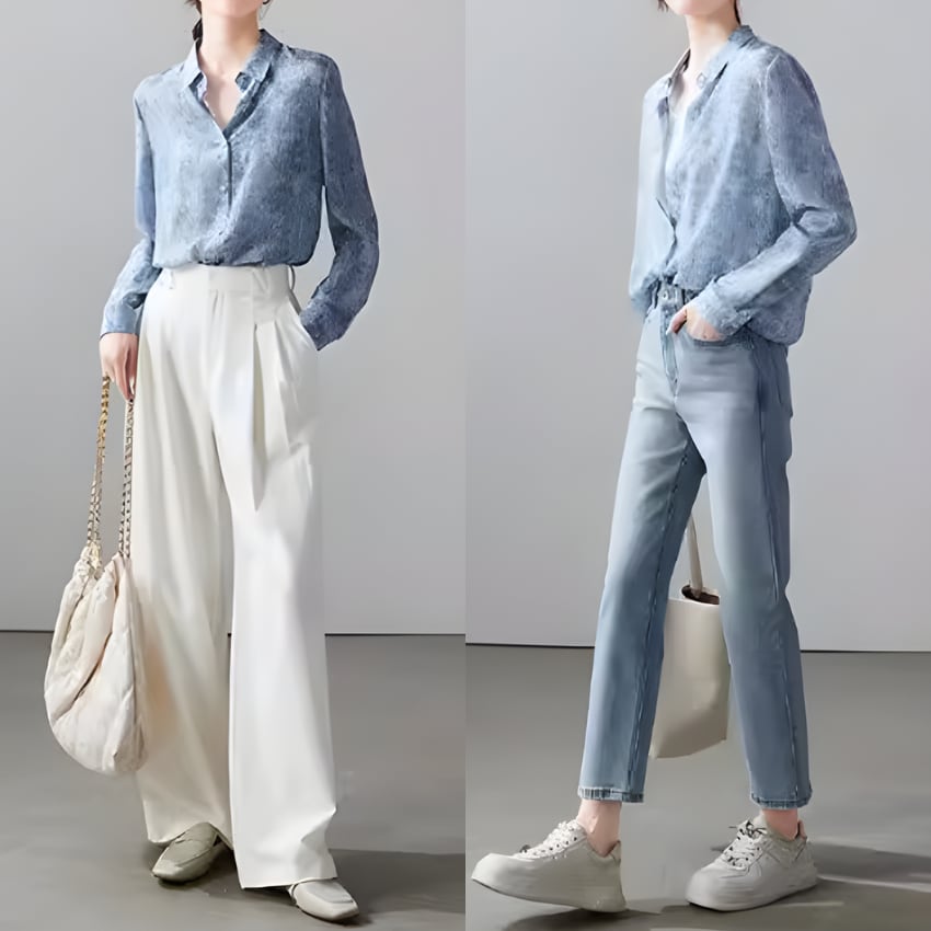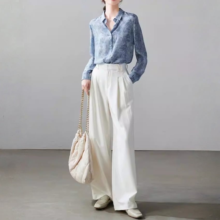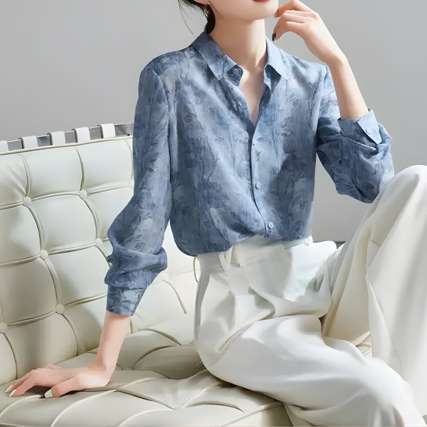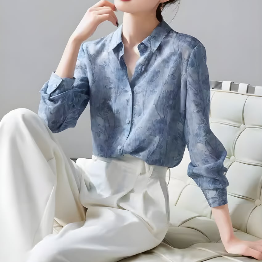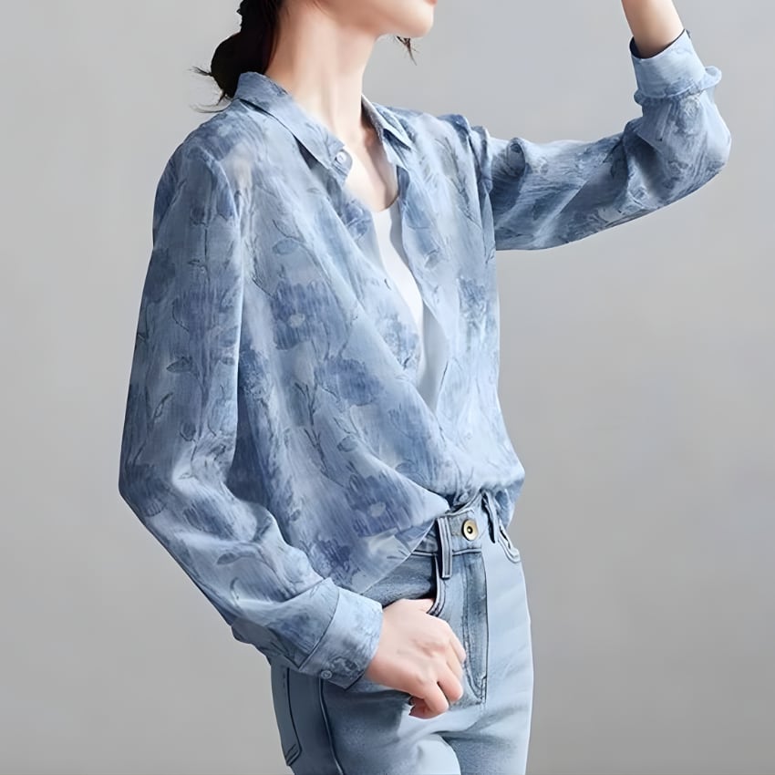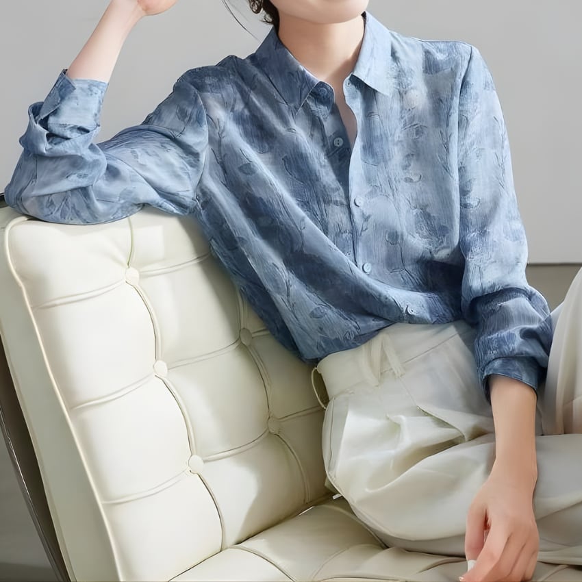 レトロブルースタンダードプリントシャツは、おしゃれな柄が魅力的なアイテムです。スタンダードなシャツカラーなので、様々なシーンで着回しが可能です。デニムやスカートと合わせてカジュアルに着こなしたり、ジャケットと合わせてオフィススタイルにも活用できます。一枚持っているとコーディネートの幅が広がる、おすすめのアイテムです。