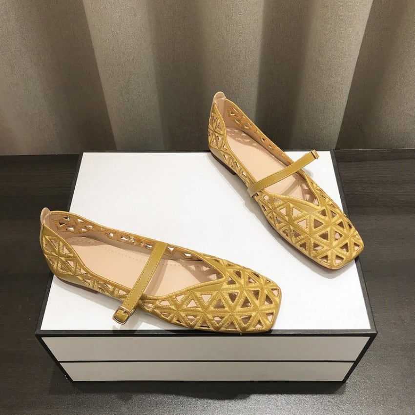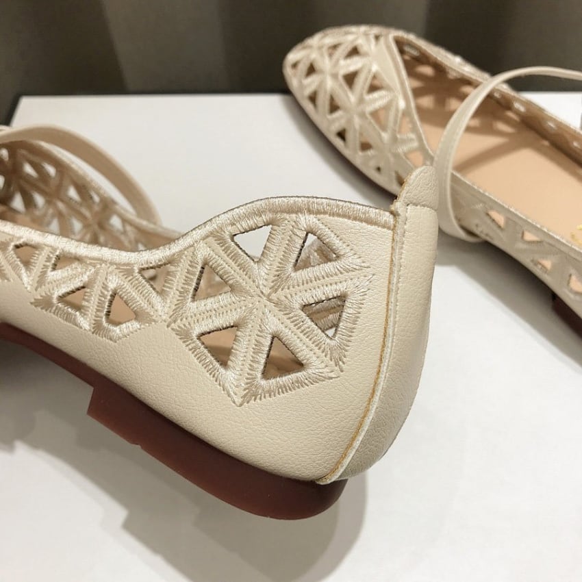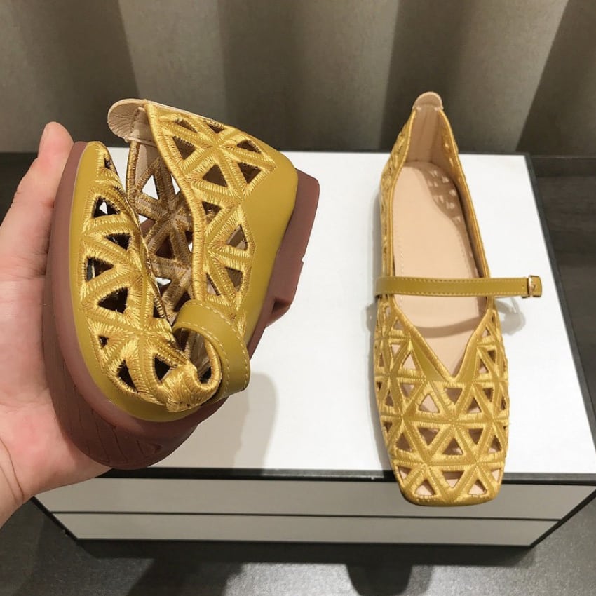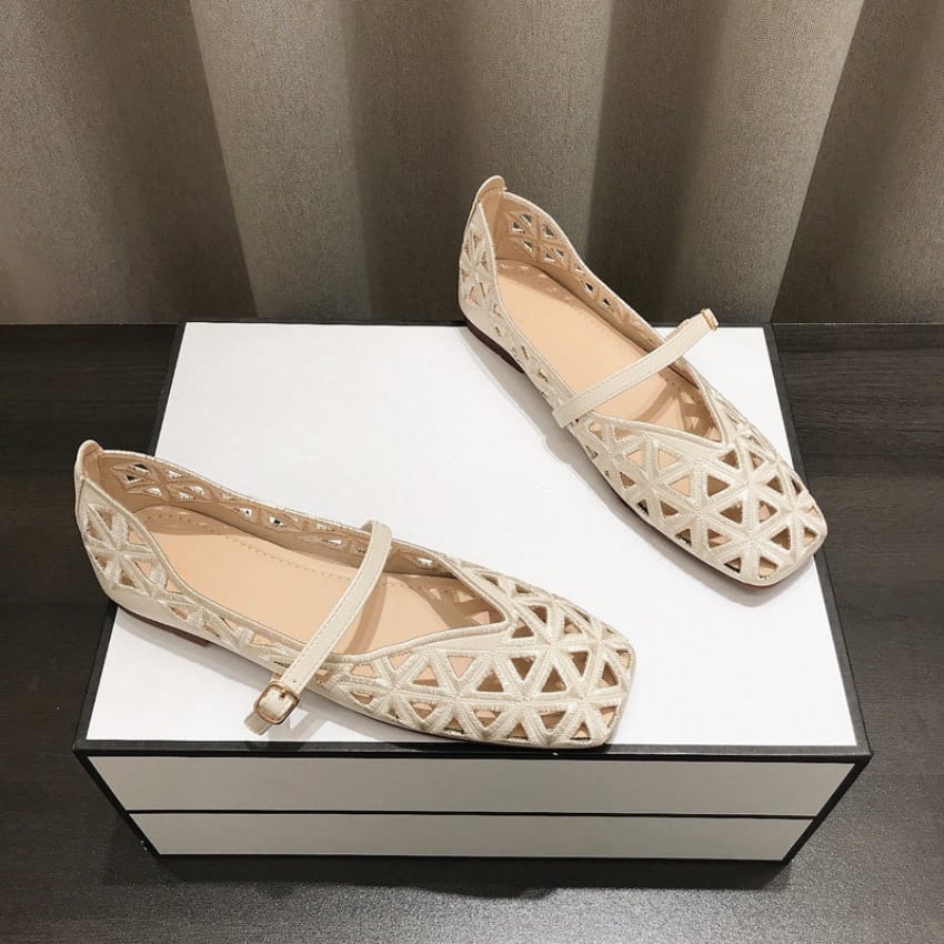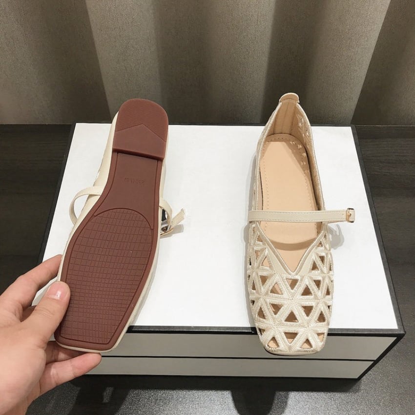 フレンチスタイル透かし彫りスクエアトゥフラットシューズ (2Colors) BM1391