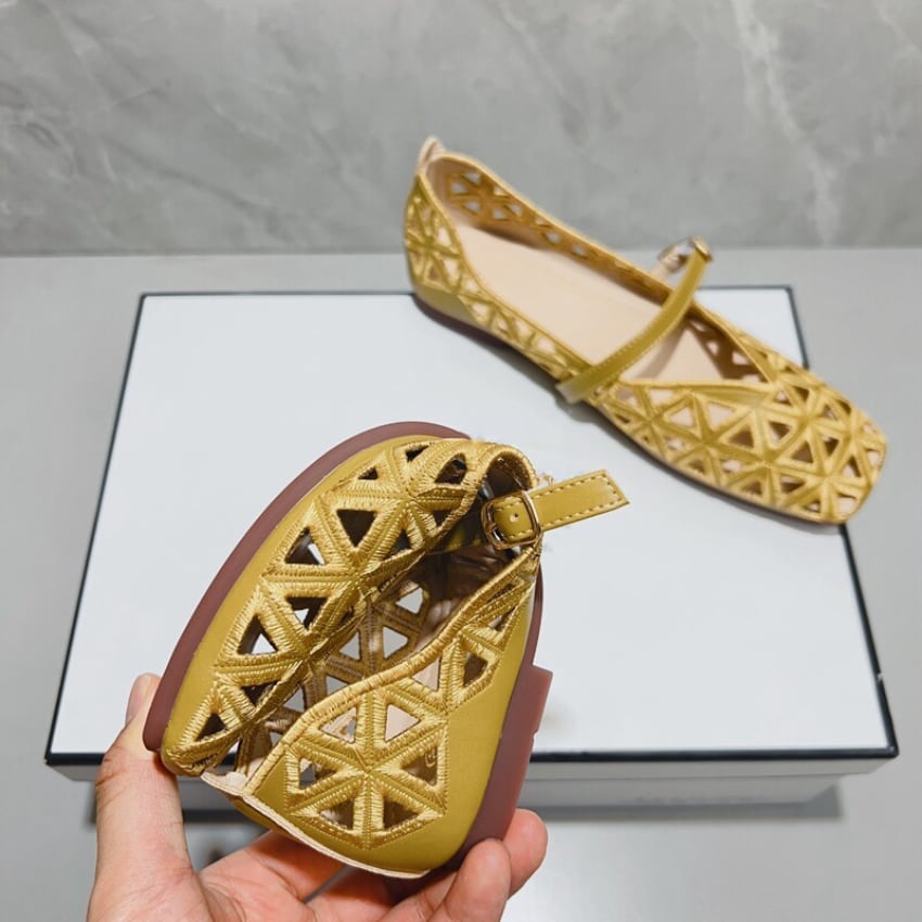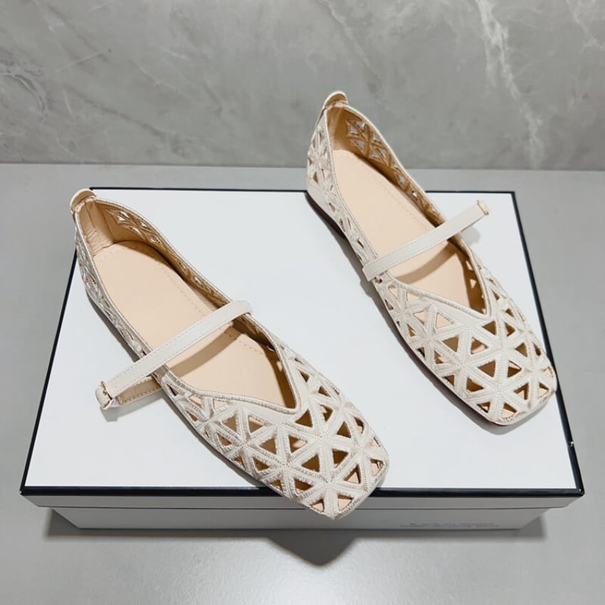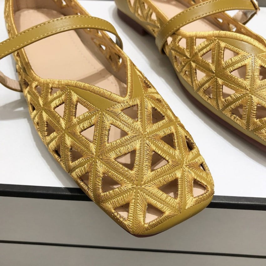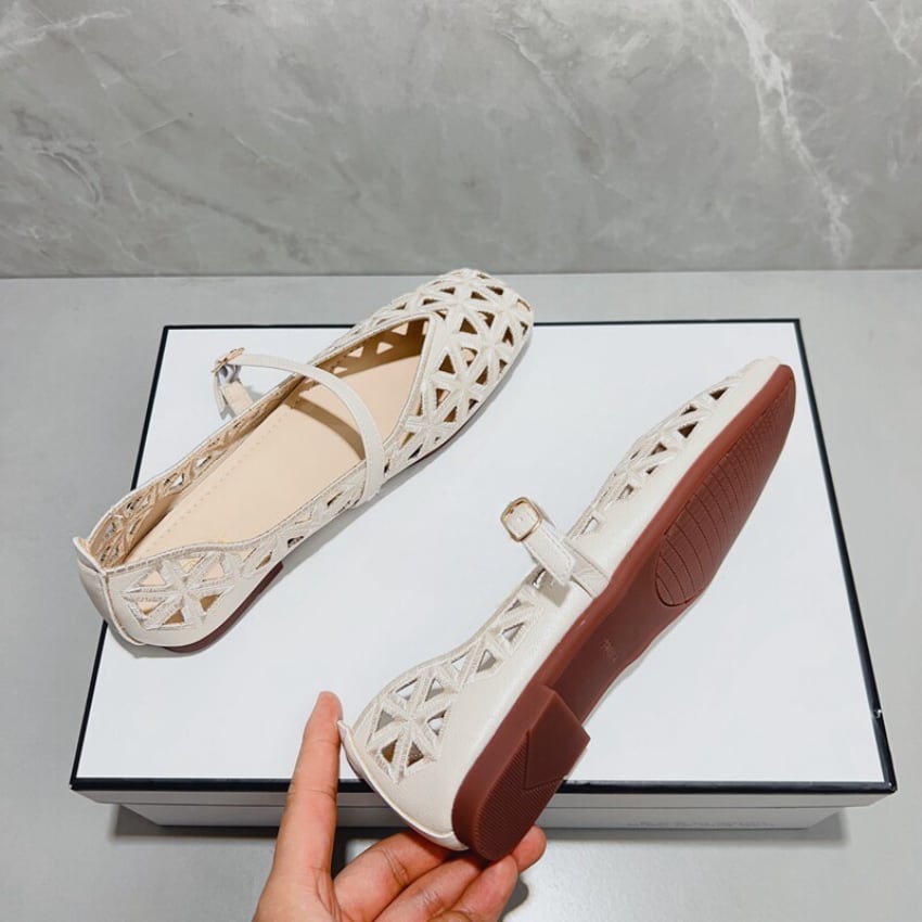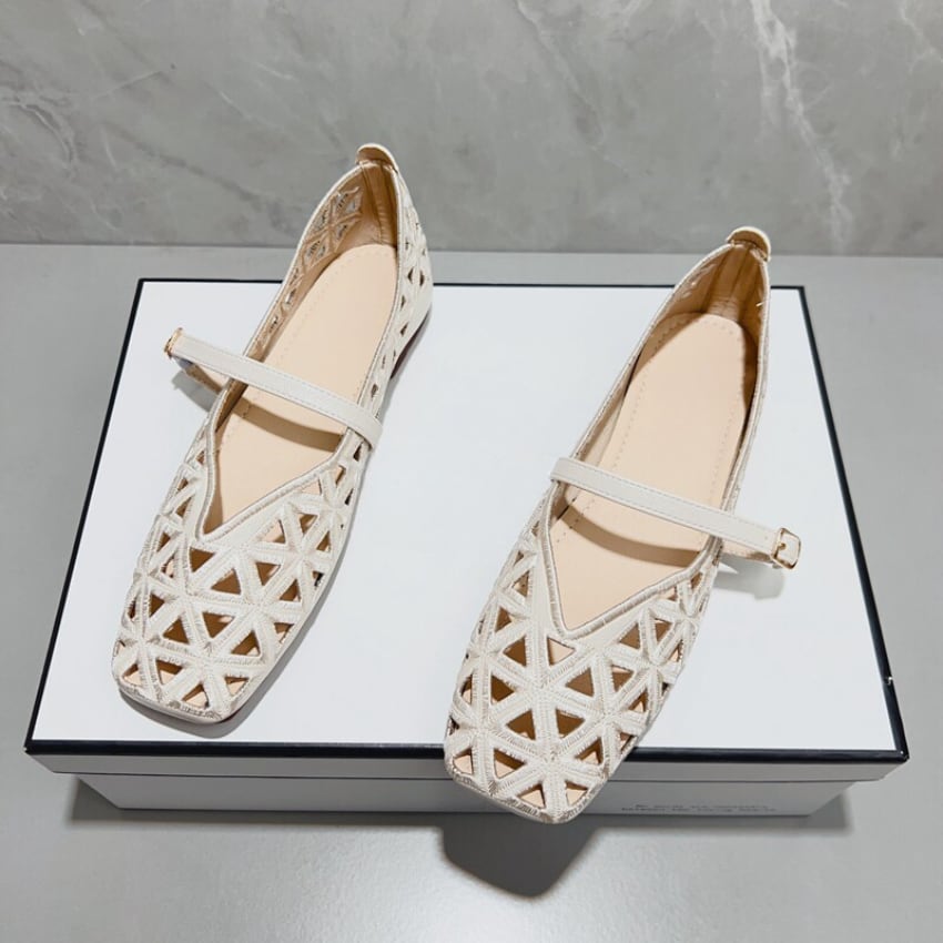 フレンチスタイル透かし彫りスクエアトゥフラットシューズ (2Colors) BM1391