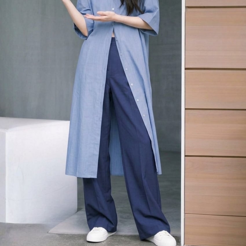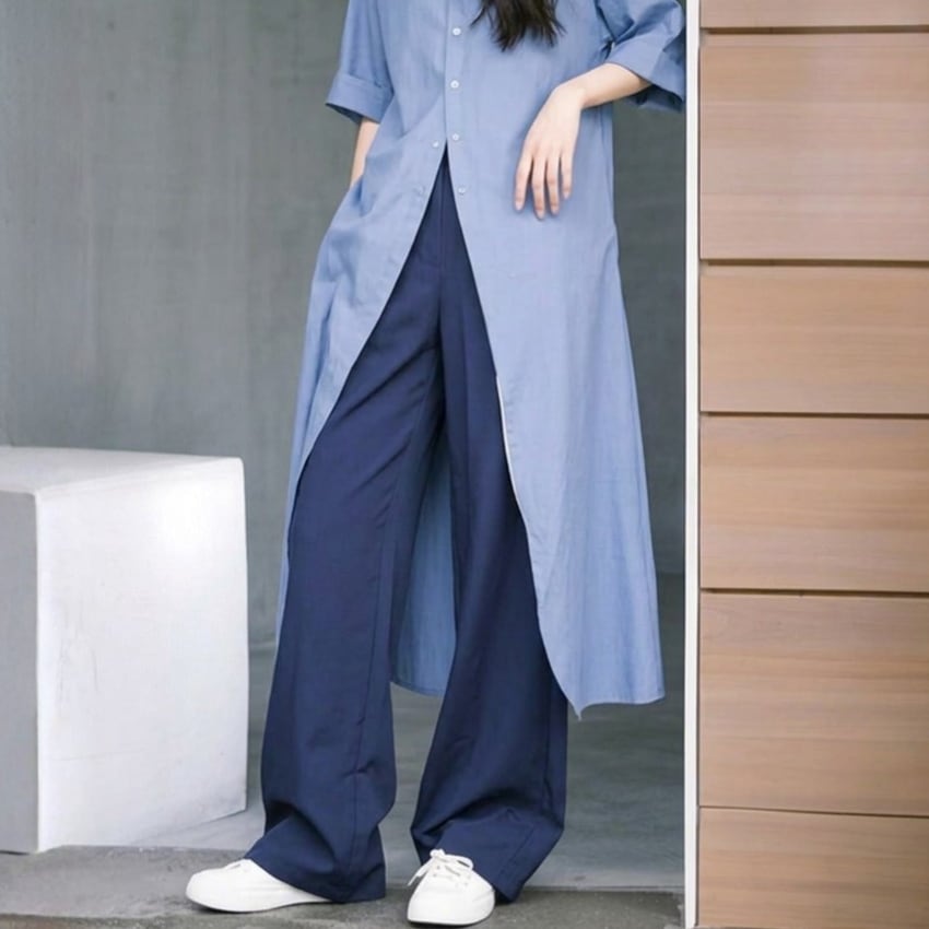 スタイリッシュワイドレッグブルーパンツ BM1393