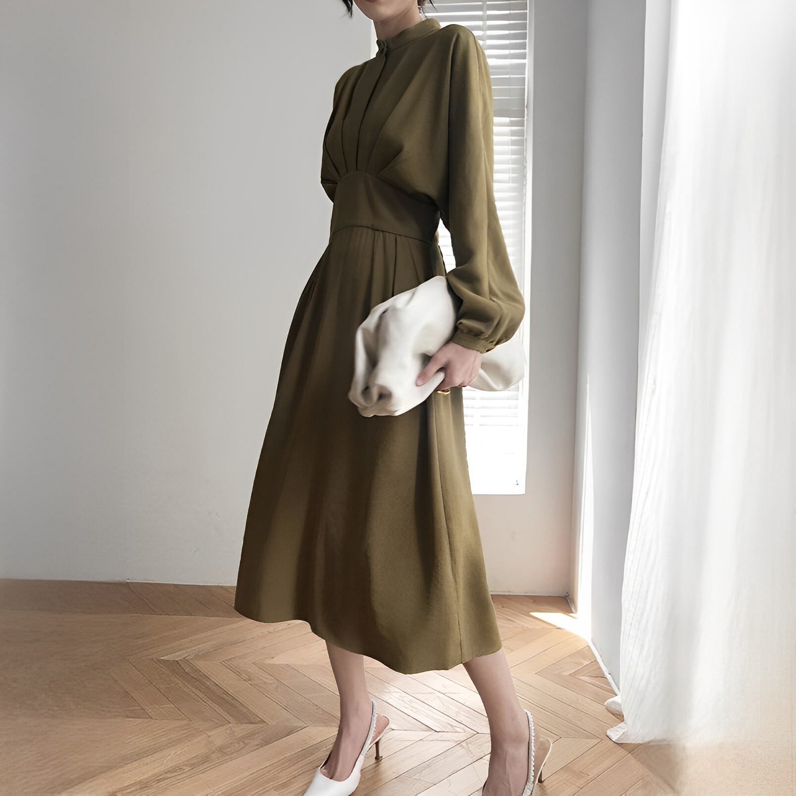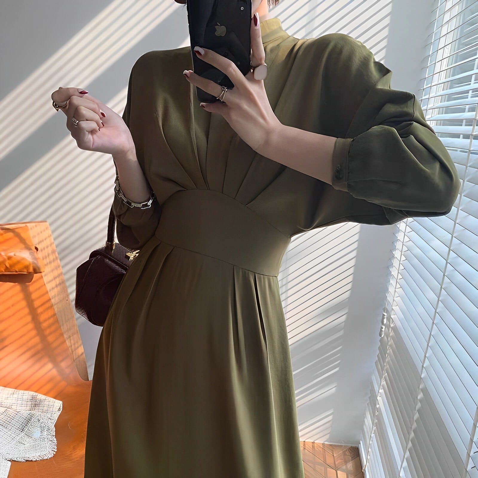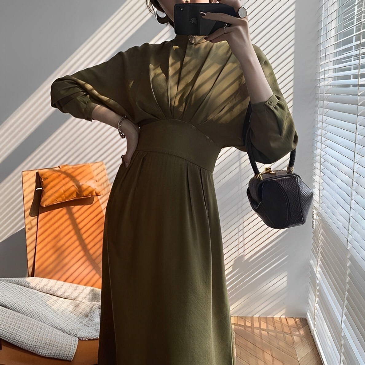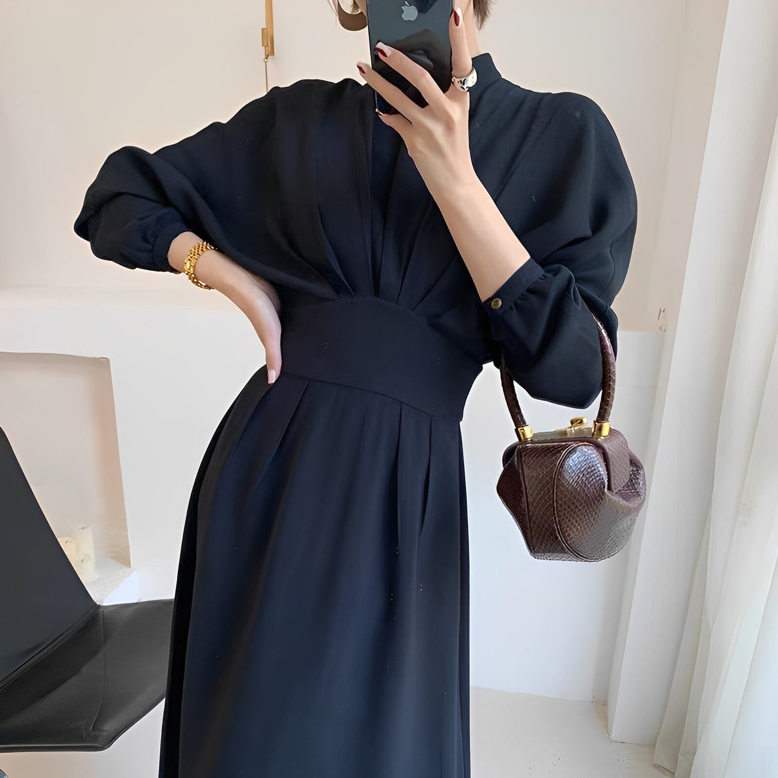 ドルマンスリーブウェストシェイプ長袖ワンピース BM0124