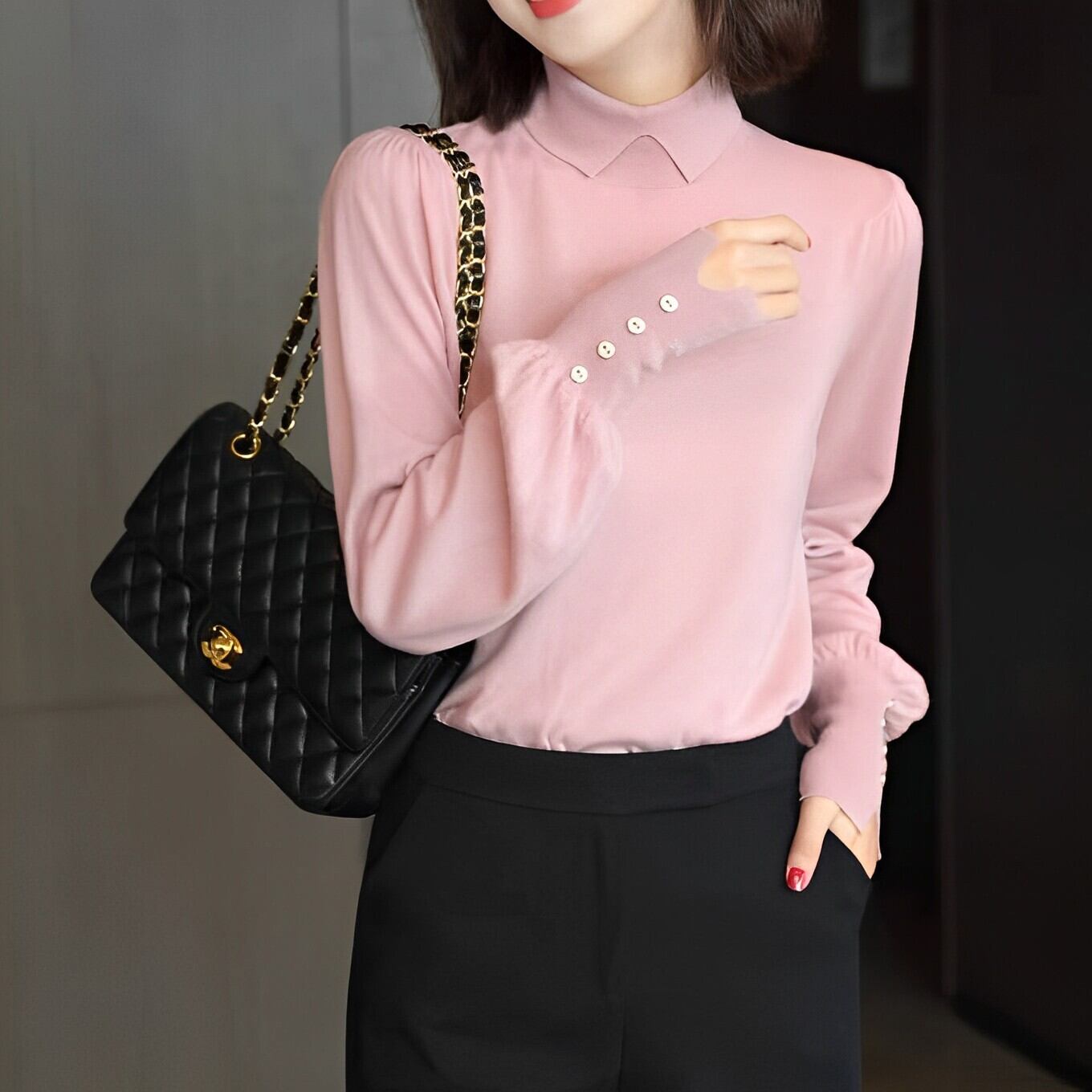 すっきりとした印象のパフ袖がポイントのデザイン襟ニットになります。女性らしさを引き立てる華やかなデザインで、おしゃれな着こなしが楽しめます。柔らかな素材感と肌触りの良さも魅力で一日中快適に着用できます。さらに、ビジネスシーンやカジュアルなシーンにもマッチする万能アイテムです。