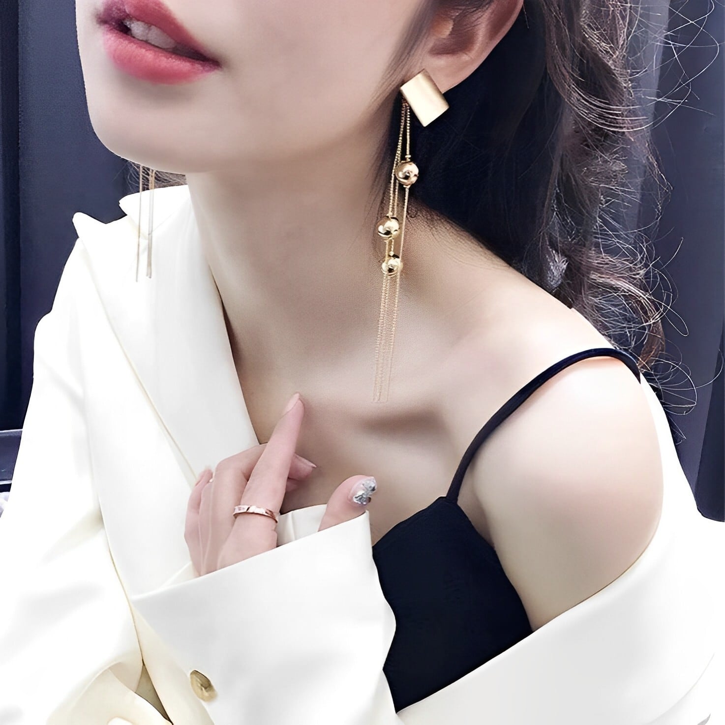 ロングタイプフリンジメッシュレッドイヤリング BM0204