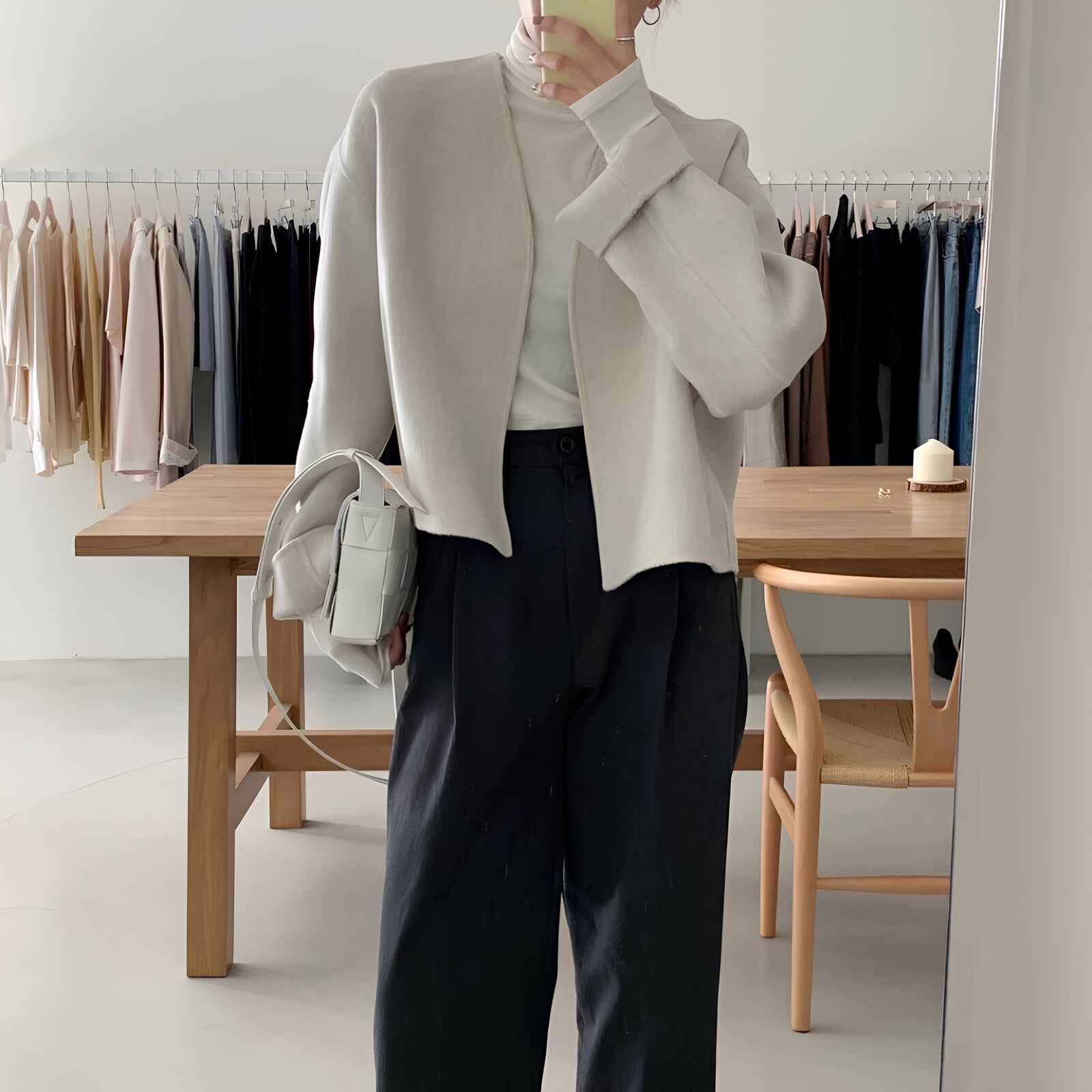 デイリーコーディネートに華やかさをプラスするVネックパフスリーブショートコートが登場しました。女性らしいシルエットとボリューム感のある袖デザインが魅力です。サラッと羽織るだけで、一気におしゃれ度がアップします。
