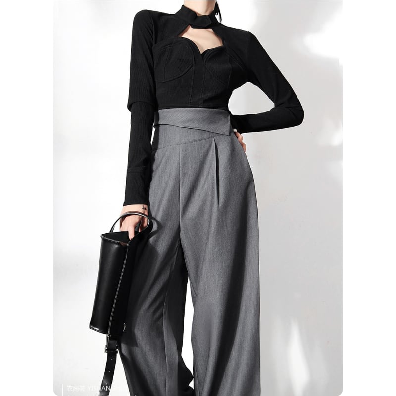 ハイウエスト ドレープワイドレッグ パンツ BM0223