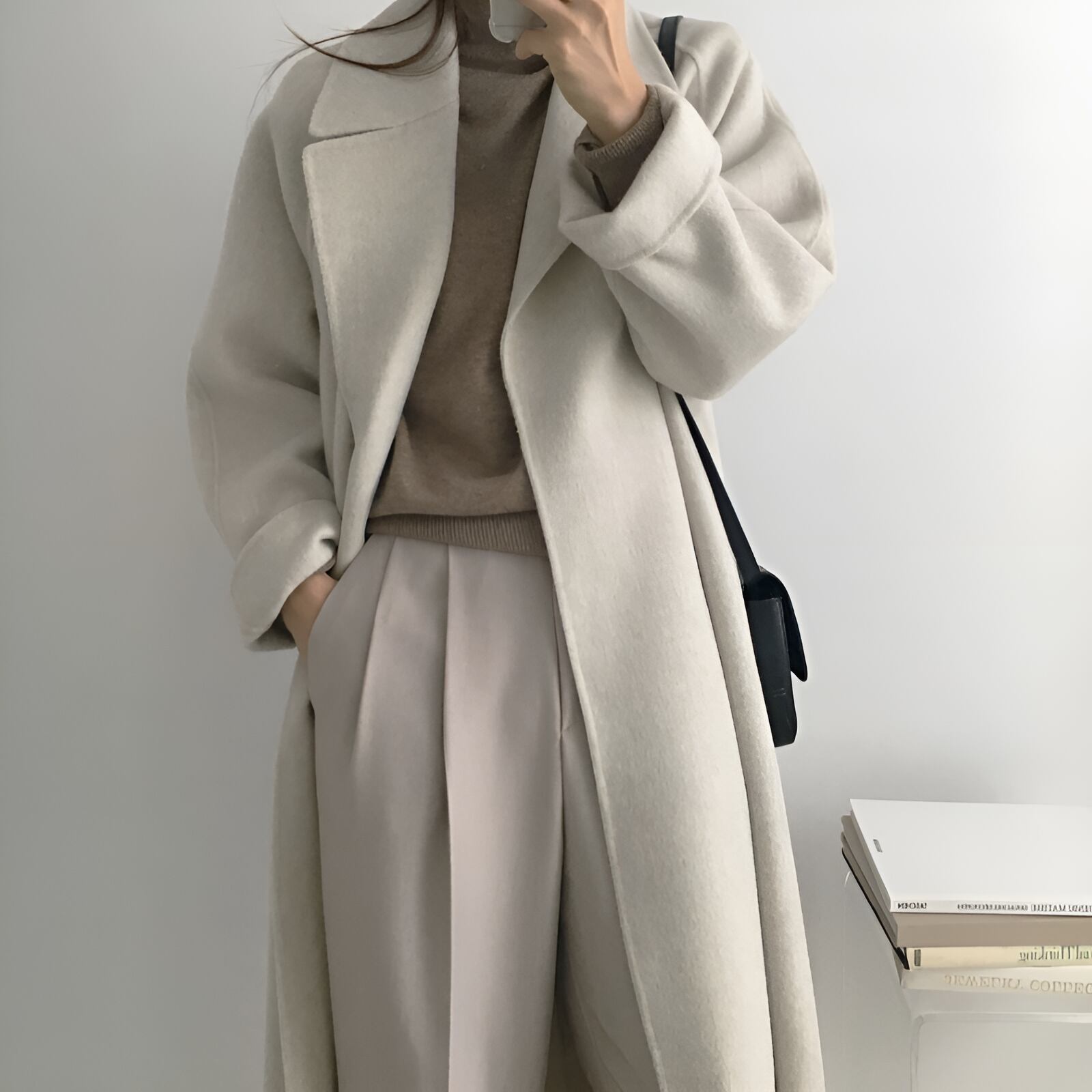 レトロな雰囲気漂うルーズミッドレングスウールコートになります。上品なデザインと肩や袖に施されたディテールが、どんなスタイルにも馴染む一着です。寒さが増してくる今の季節には、暖かさとスタイルを兼ね備えたコートが必須ですが、さらに幅広いコーディネートに取り入れて、上品でおしゃれな雰囲気を演出してください。