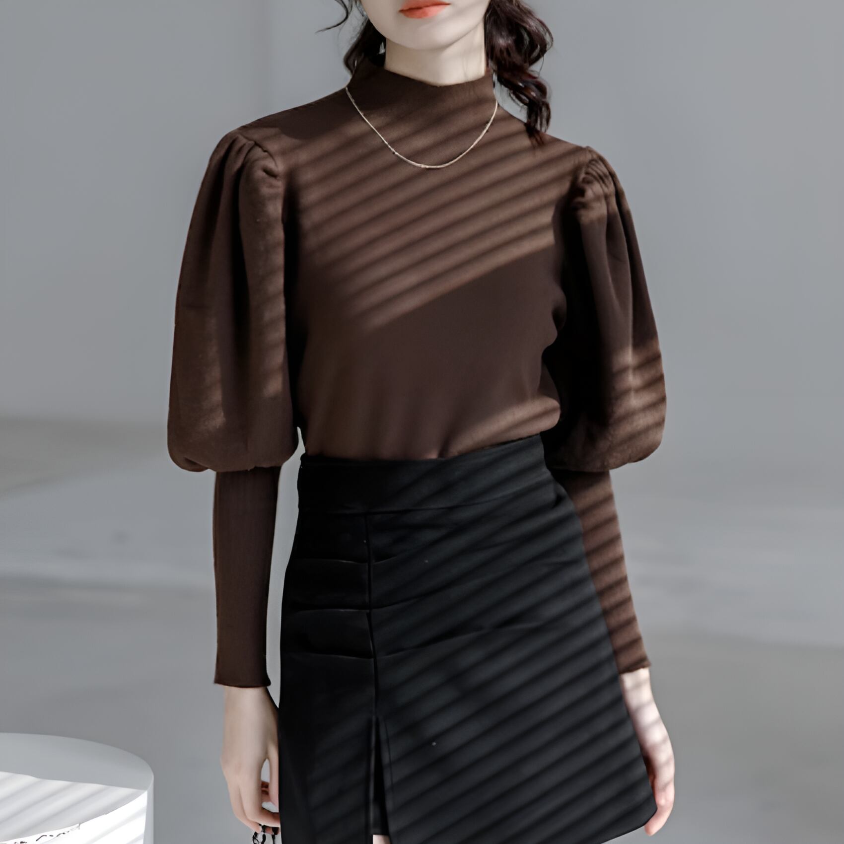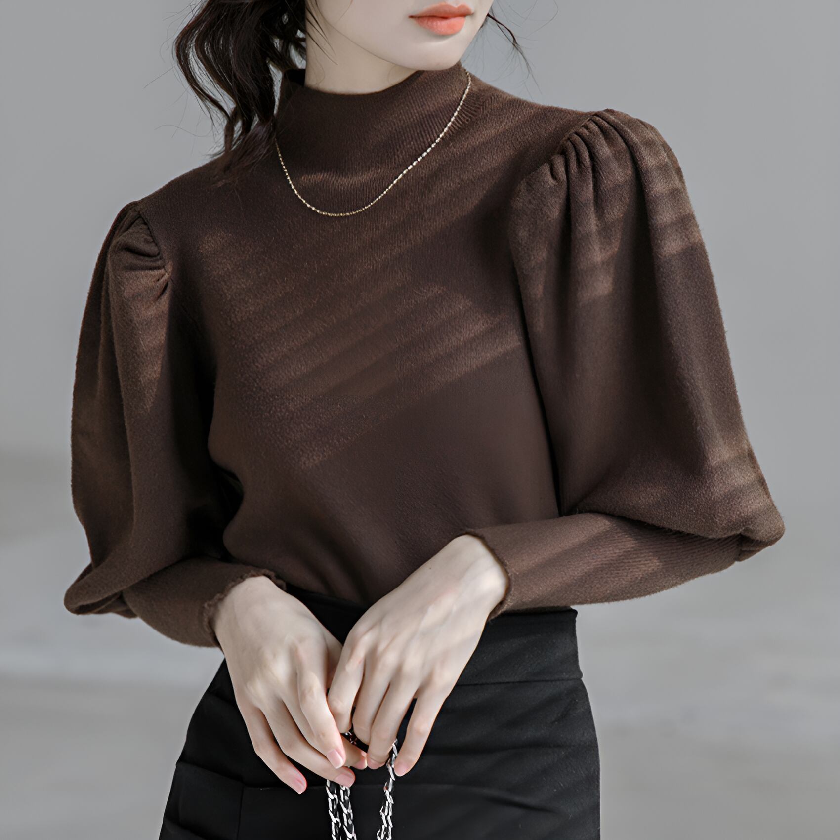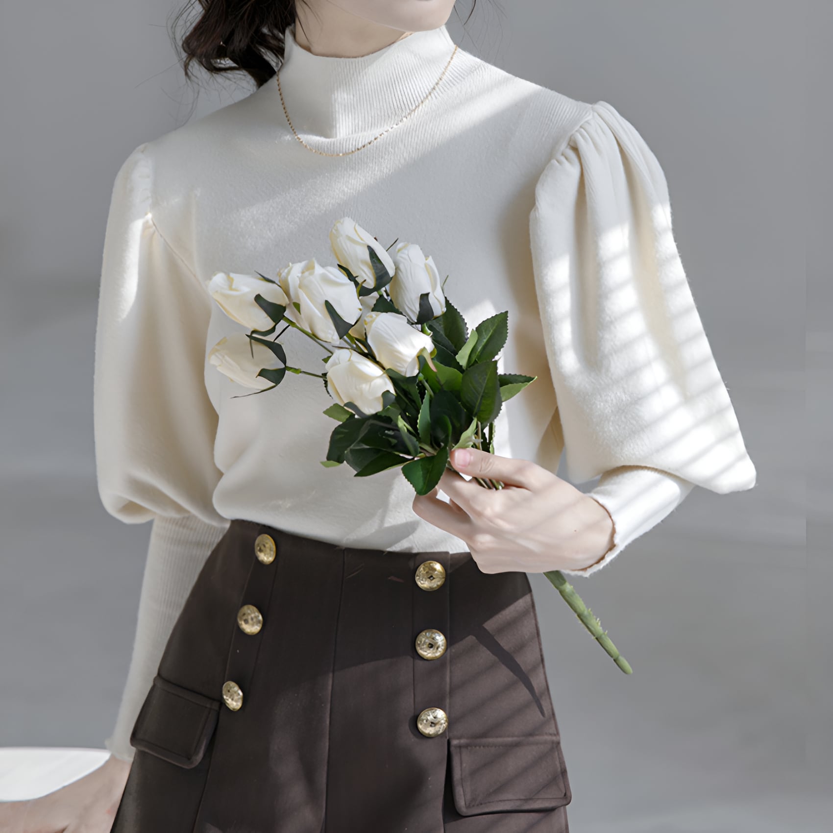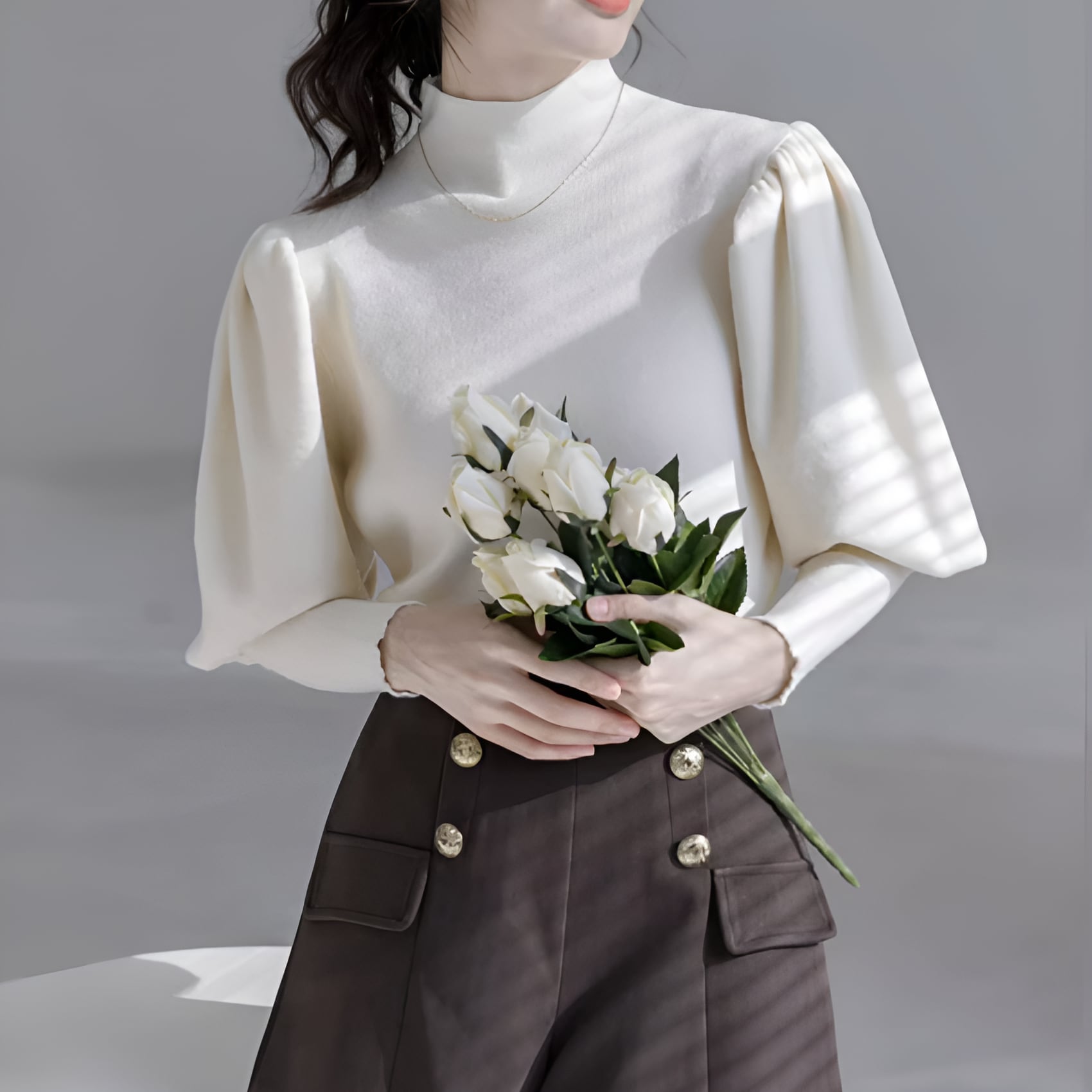 ふんわりとしたパフスリーブがエレガントなタートルネックセーターなります。女性らしさを引き立てる美しいデザインで日常のコーディネートに華やかさをプラスしてくれます。柔らかな素材感とボリューム感が特徴で着心地も抜群です。さらに、身体を温かく包み込んでくれるので寒い季節にピッタリ!ぜひ、この冬のおしゃれに取り入れてみてください。