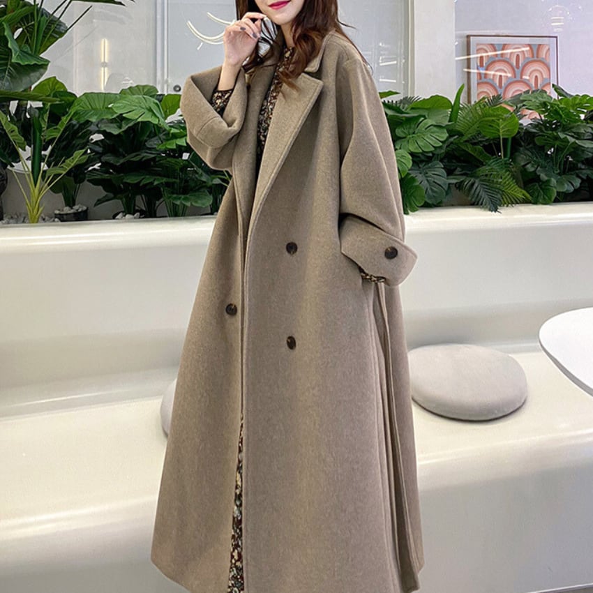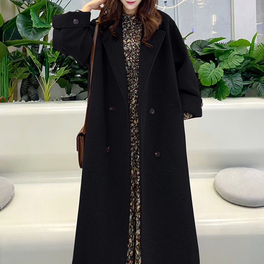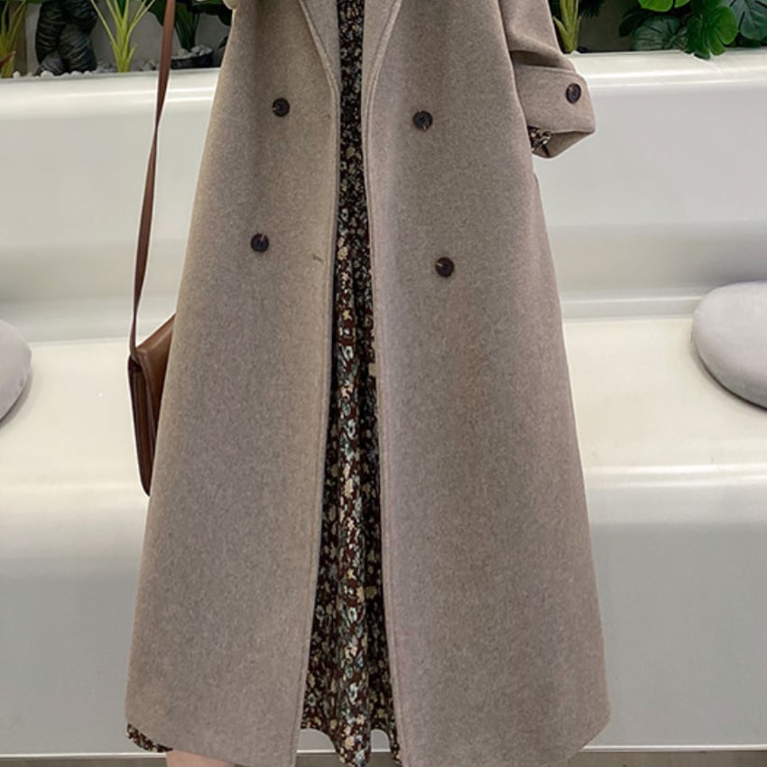 洗練されたハイエンドのエレガントさを演出するヘボンスタイルミドルレングスコートになります。高級感のあるデザインと素材は、一瞬で華やかな雰囲気を作り出します。また、コクーンシルエットとミドルレングスのデザインは、スマートで女性らしい魅力を引き立て、どんなコーディネートにも合わせやすく、大人の女性を魅了する存在になることでしょう。