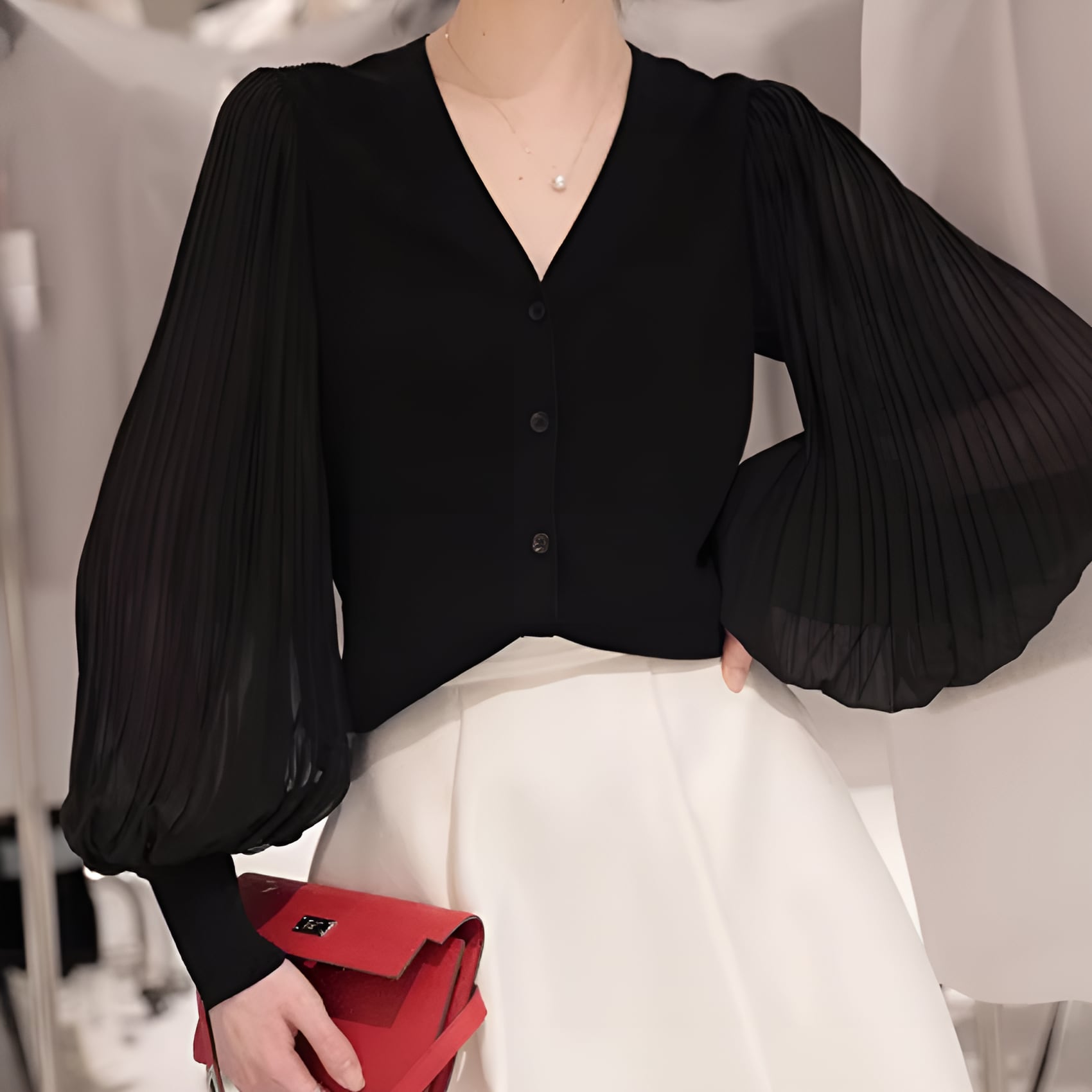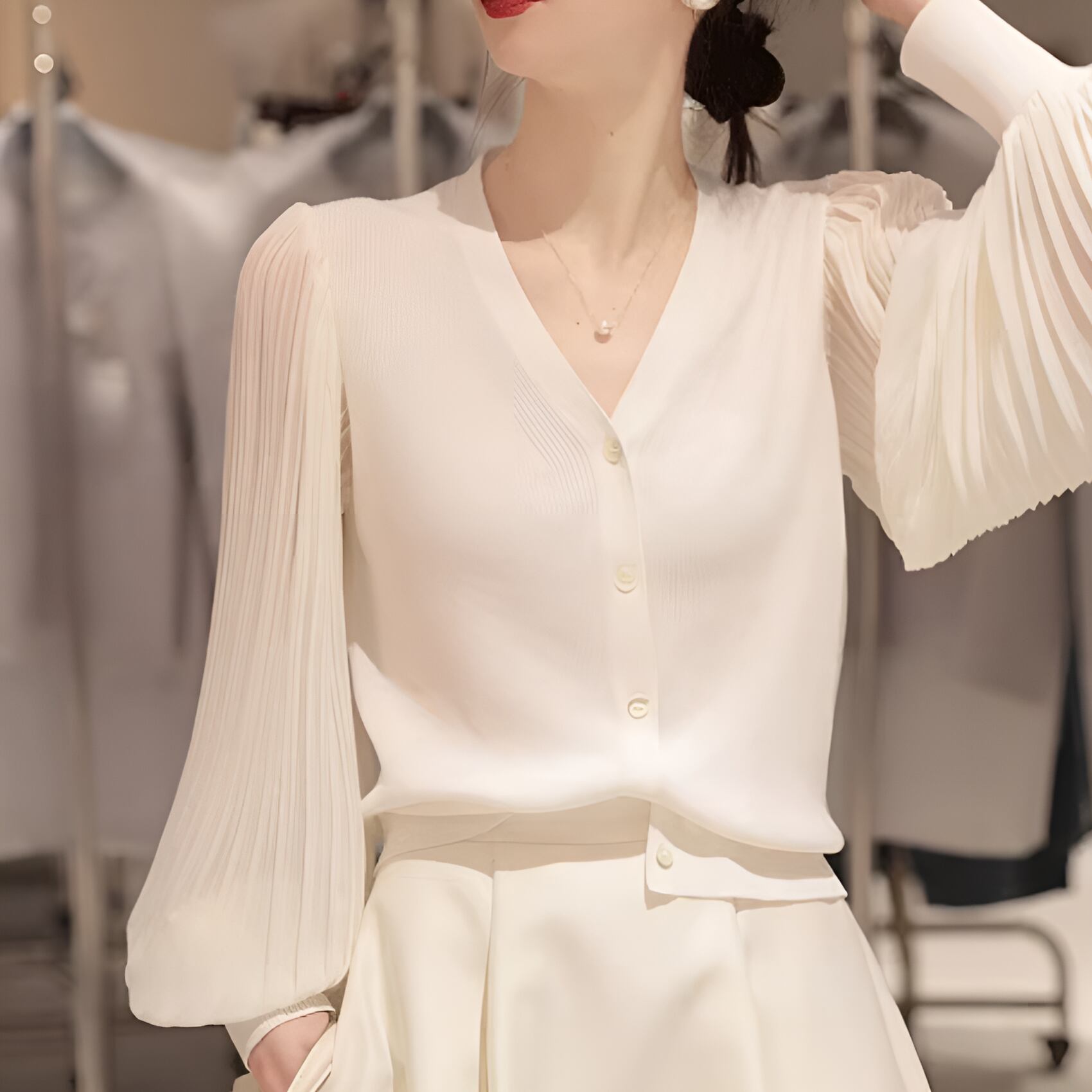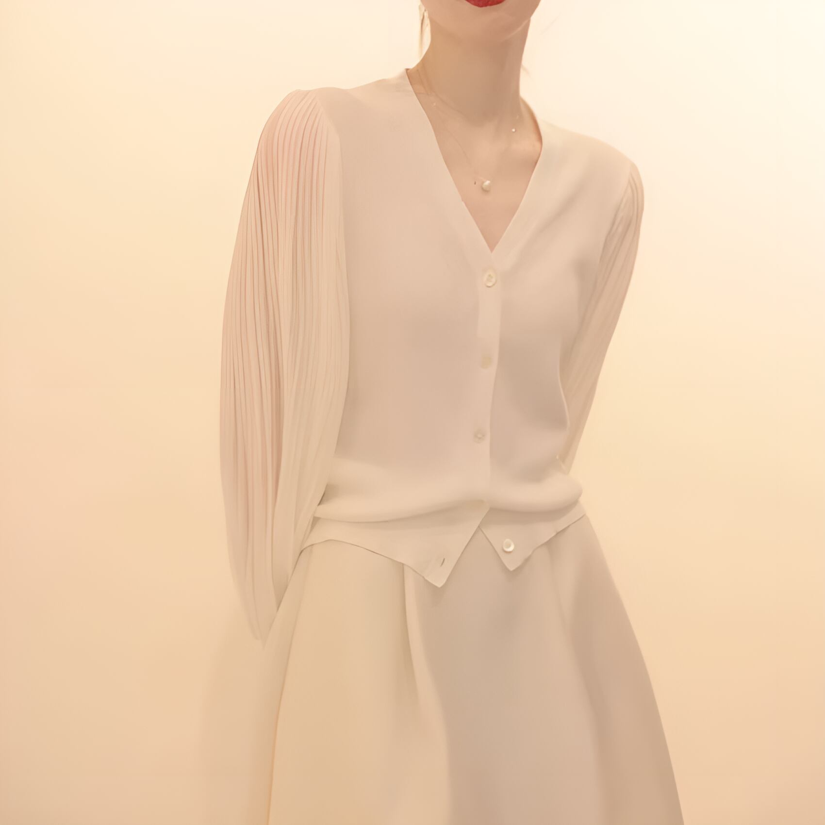 スプライシングランタンスリーブVネックニットカーディガン BM0394
