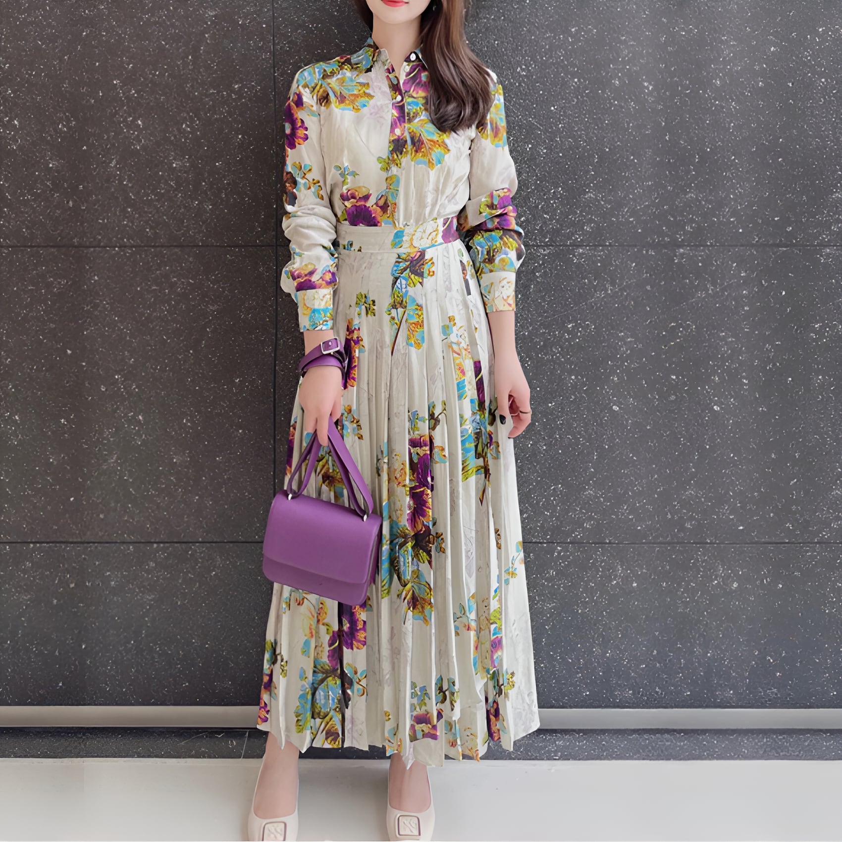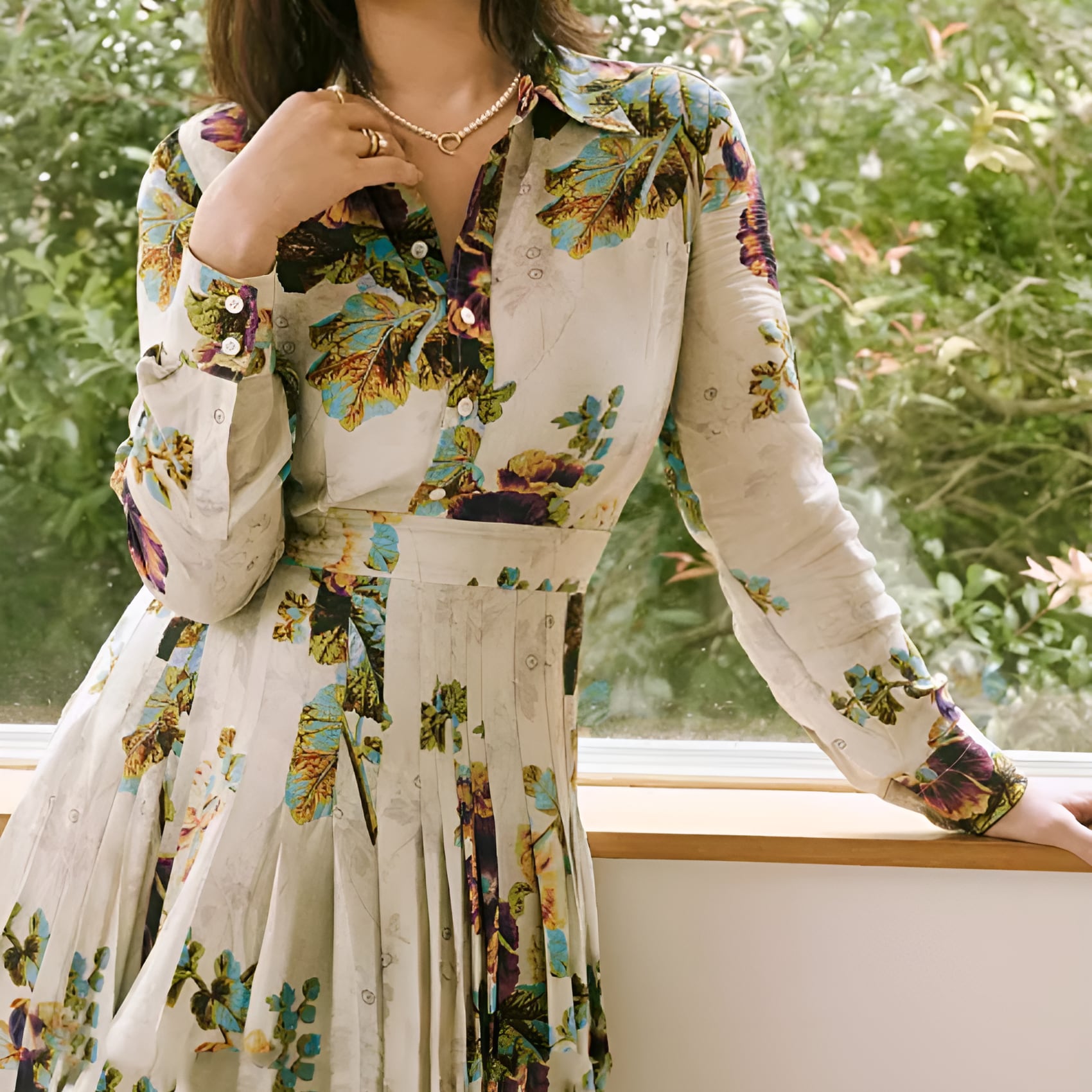 フレンチヘップバーンスタイルのドレーププリントプリーツワンピースは、まるで映画の中のような上品で華やかなスタイルを演出します。緩やかに広がるプリーツと上品なドレープデザインが魅力で、女性らしいシルエットを作り出します。フェミニンな花柄プリントが、さらに女性らしさを引き立てます。さらに、光沢感のある素材で上品な印象を与え、華やかさをプラスします。どんなコーディネートにも合わせやすく、デートやパーティーなど、様々なシーンで活躍します。フレンチヘップバーンのようなエレガントなスタイルに憧れる方にぴったりの一着になります。