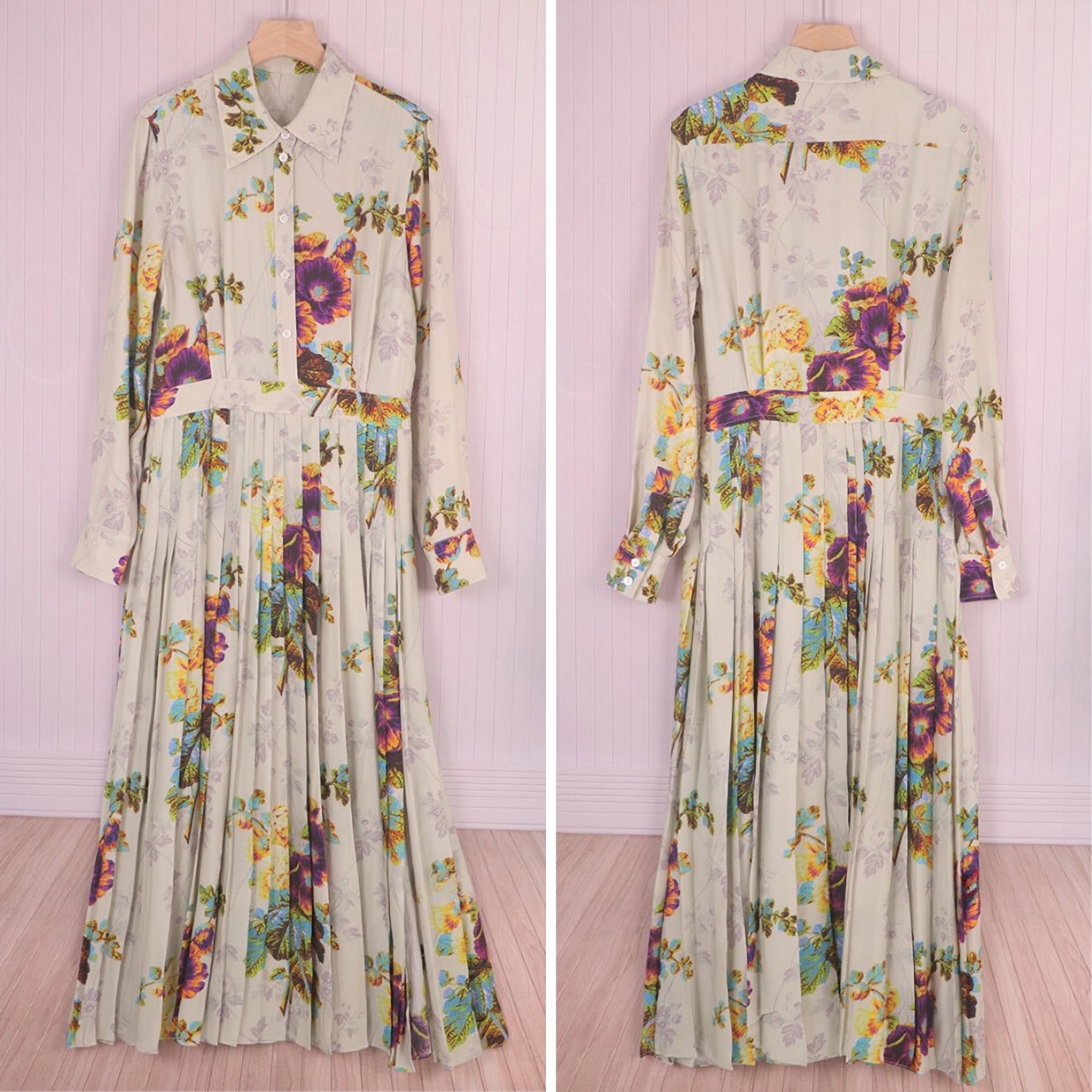 【衣装協力商品】フレンチヘップバーンスタイル ドレーププリントプリーツワンピース BM0403