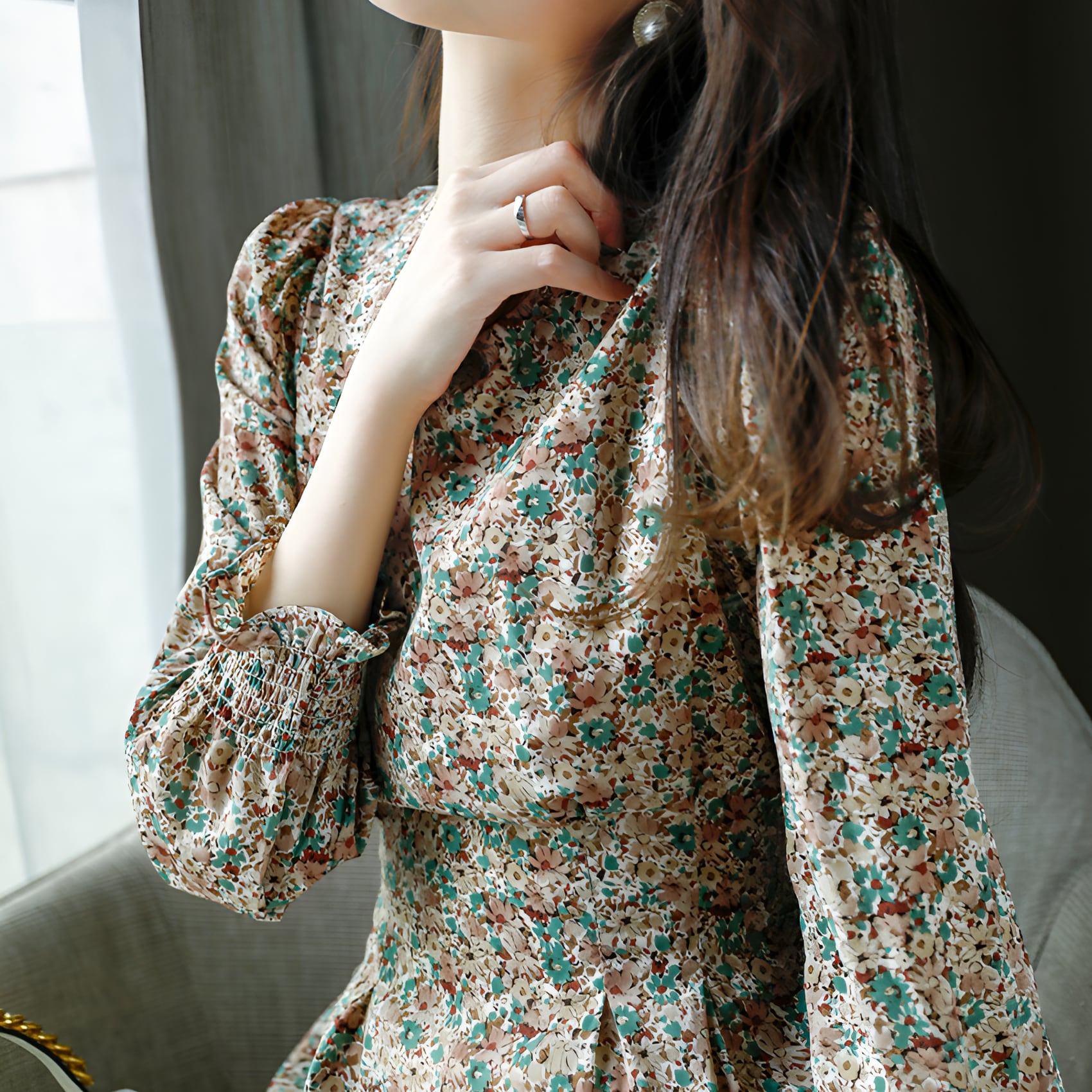 デザインニッチ花柄ワンピース は、暖かな陽光の下で、自然な美しさを纏った一枚です。軽やかな素材と自然なボリューム感のシルエットが、女性らしさを引き立てるデザイン。様々な場面で活躍するデザインニッチ花柄ワンピース。自然な美しさを身に纏い、心地よい季節を満喫しませんか。