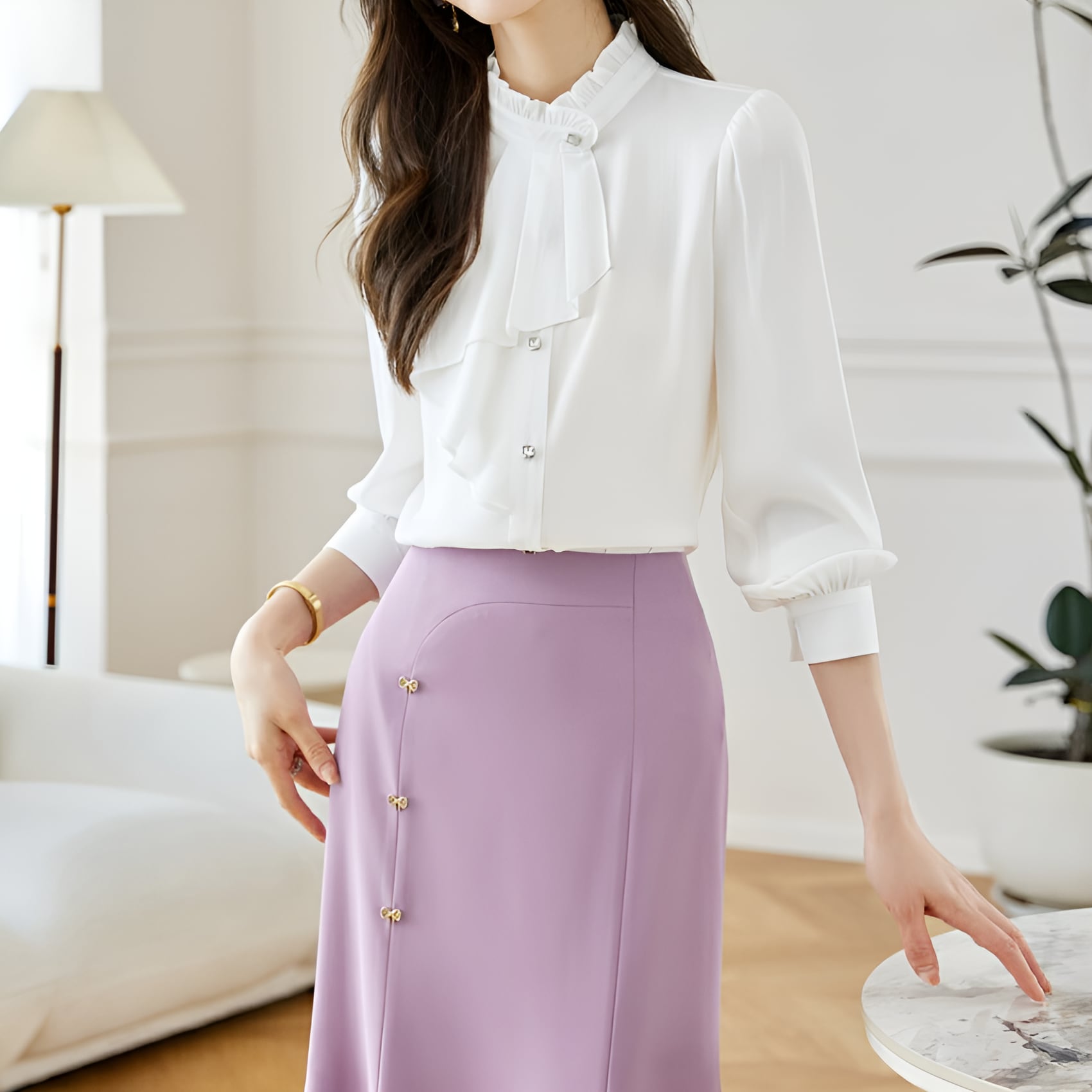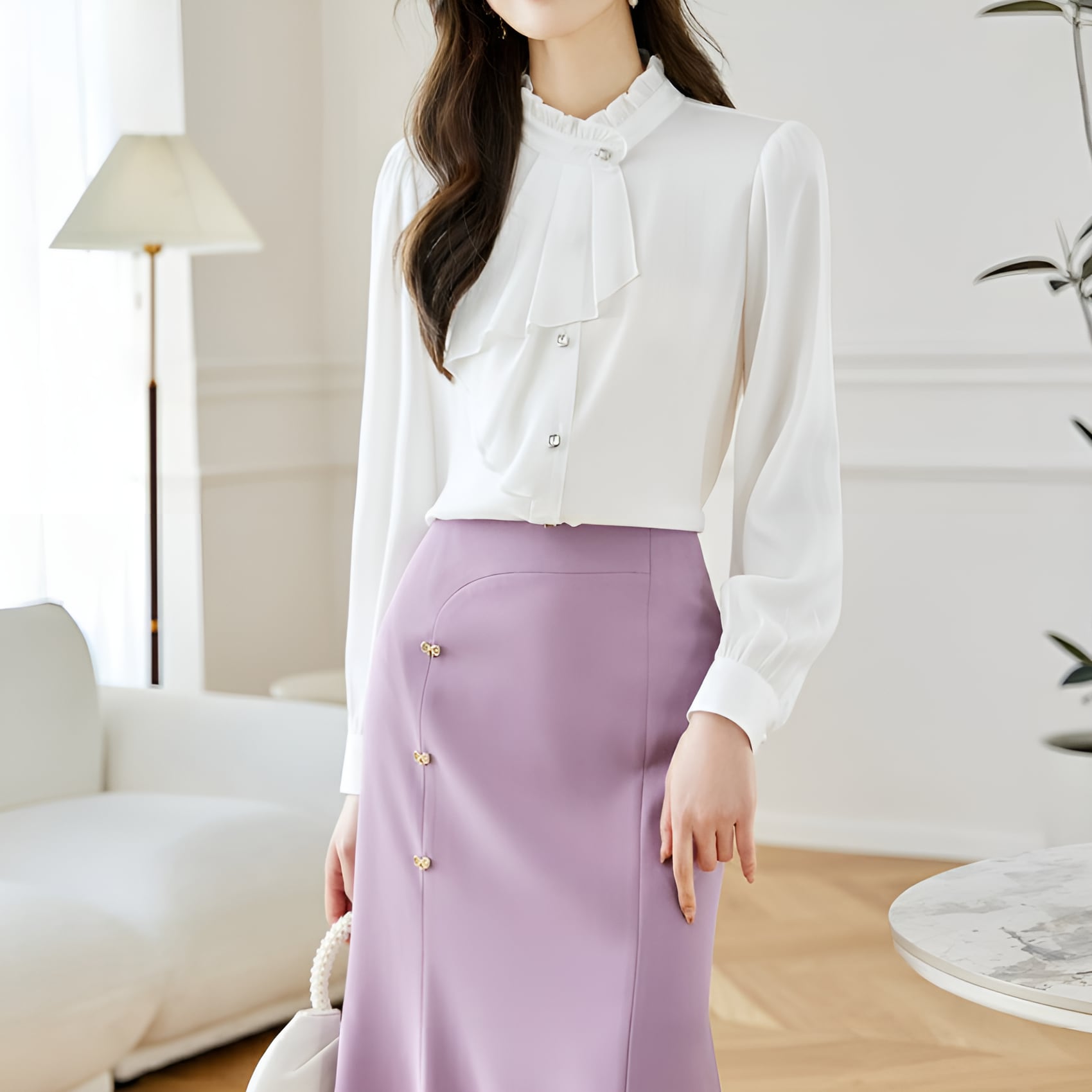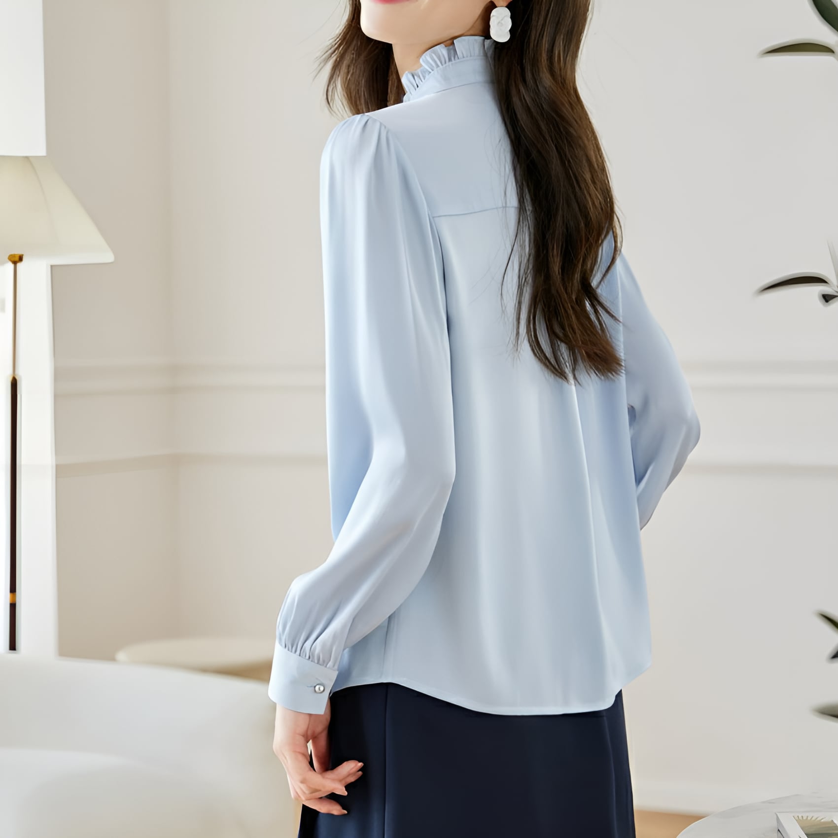 シフォン素材の軽やかさとエレガントなデザインが融合したフレンチシック シフォンブラウスになります。ヨーロッパの伝統的なデザインを現代風にアレンジした一枚は、まるでパリジェンヌのような気品漂うアイテムです。シフォン素材の透け感と軽やかな風合いが女性らしさを引き立て、優雅なシルエットが着る人の魅力をグッと引き立てます。