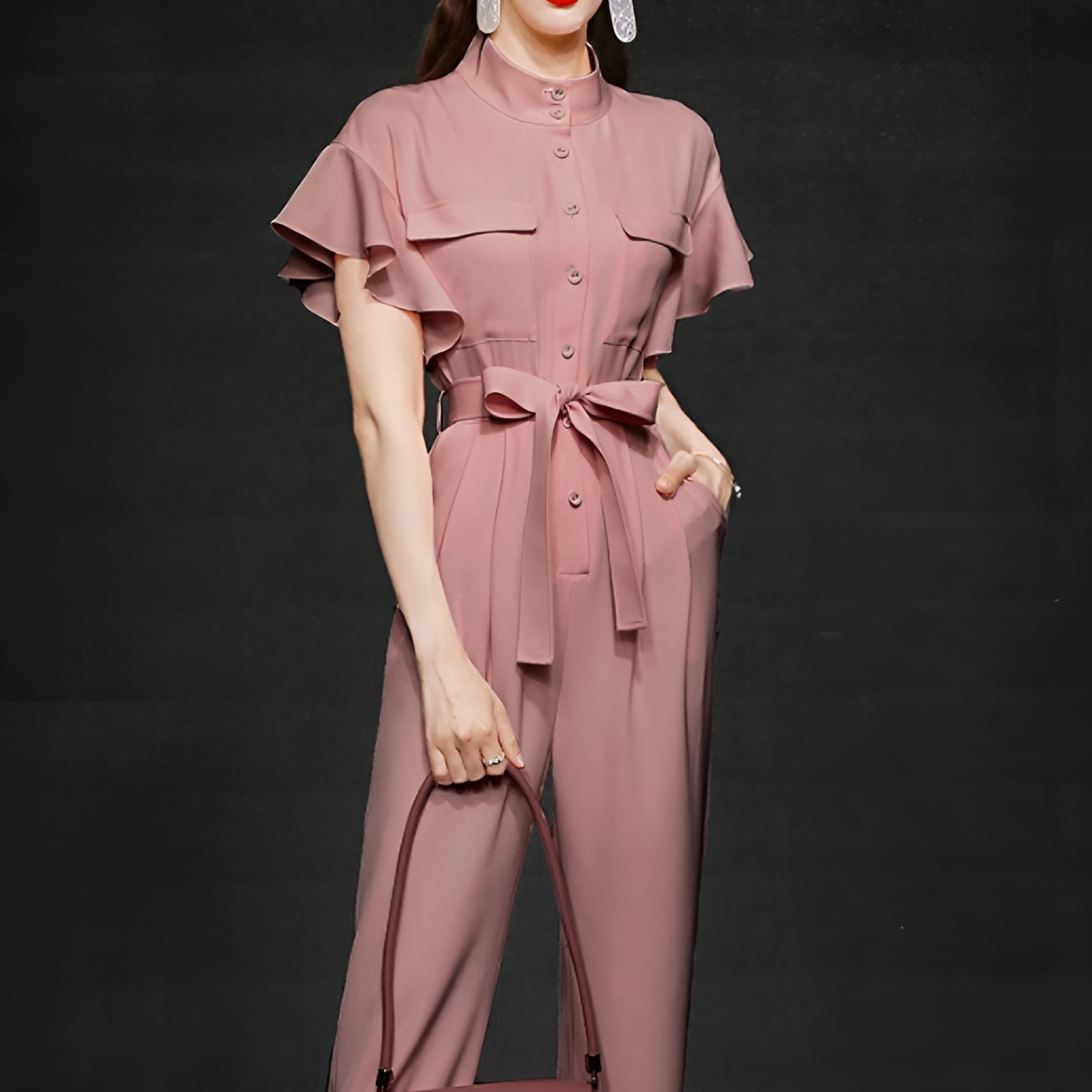 バタフライスリーブ ハイカラーライトジャンプスーツ BM0450