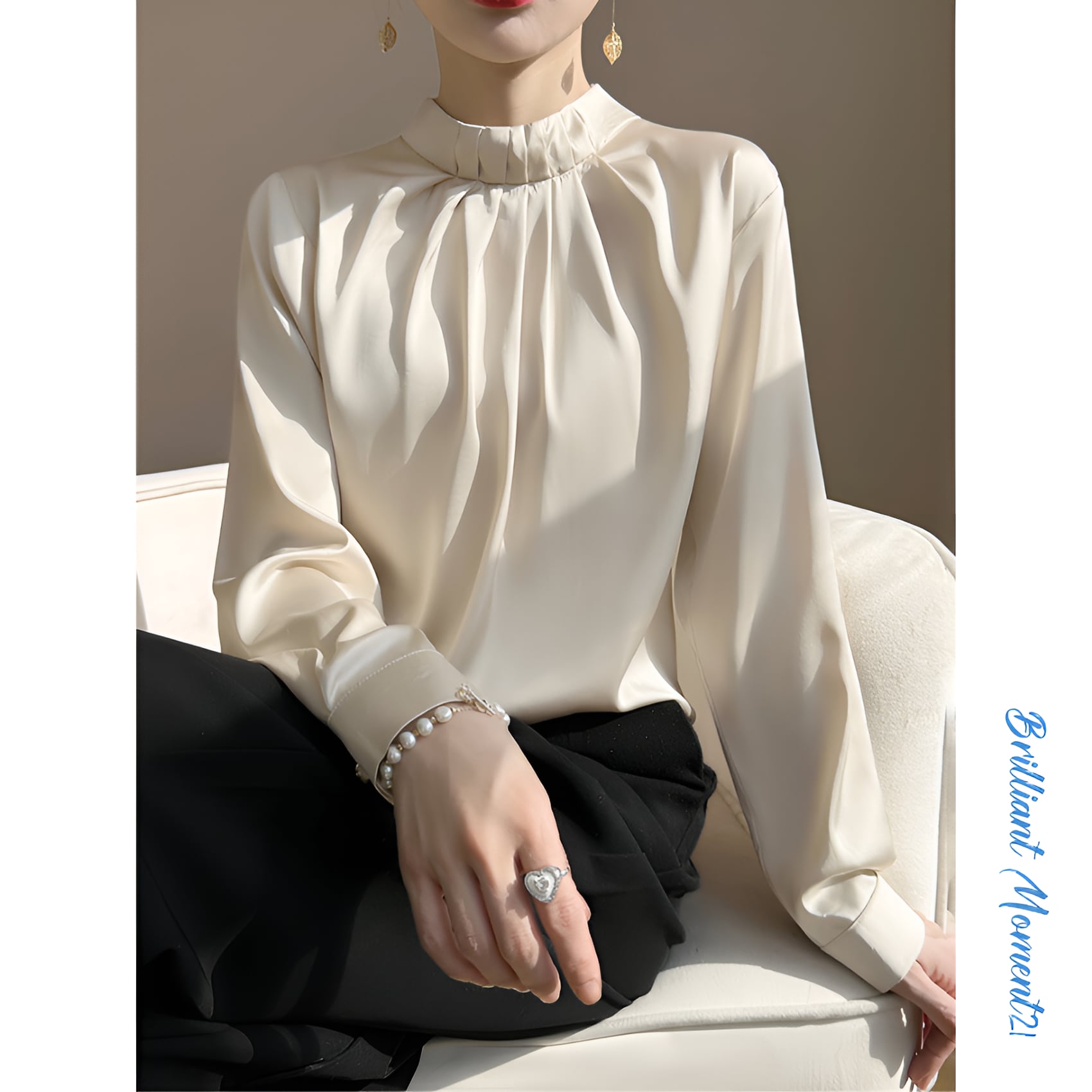 高級感漂うハイエンドスタンドアップカラーアセテートサテンシャツ。ビジネスシーンからカジュアルなデイリールックまで、幅広いシーンで活躍するアイテムです。着心地の良さと洗練された印象を両立したデザインが特徴。周りと差をつけたい方におすすめです。