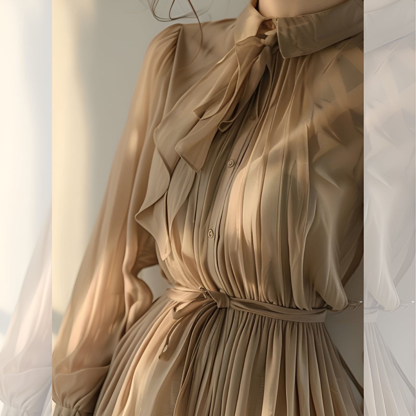 シンプルかつエレガントな魅力がたっぷりつまった、ヘップバーンスタイルフレンチレトロドレス。胸元のリボンやウエストのリボンが、可憐な女性らしさを引き立て、上品な雰囲気を演出します。フレンチレトロのデザインが、どこか懐かしくもあり、今の時代にもしっかりと根付く一枚です。
