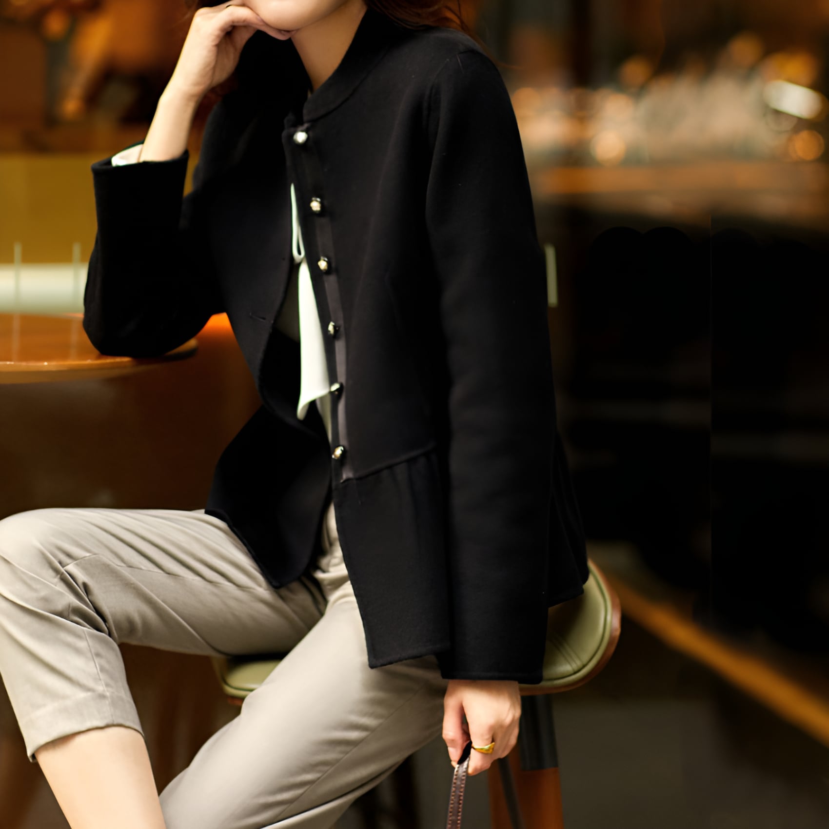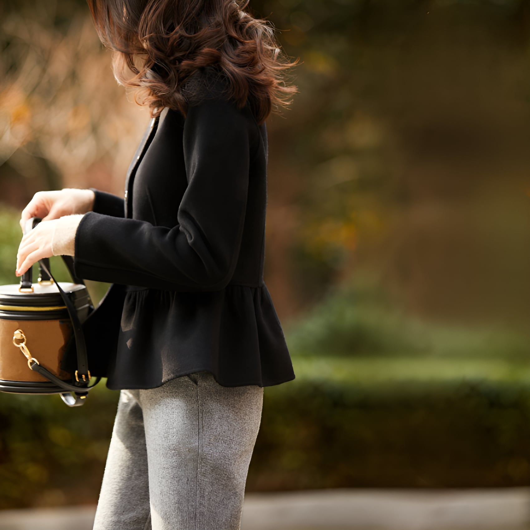ペプラムデザインショートコートは、エレガントなスタイルを演出する一着です。優雅なペプラムシルエットが体型を美しくカバーし、特別な日からカジュアルなシーンまで幅広く活躍します。ホワイトとブラックの2色から選べ、どちらも洗練された印象を与えます。心地よい素材が肌に優しく、着るたびに自信を与えてくれる魅力があります。