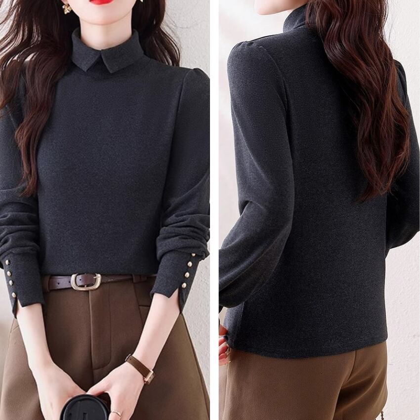 ポロカラーデザイントップスは、洗練されたスタイルを完成させる必見のアイテムです。ブラックとダークグレーのベルベット素材を使用し、贅沢な肌触りと温かさを兼ね備えています。シンプルなデザインの中に、ポロカラーがアクセントとなり、カジュアルでありながらも上品な印象を与えます。デイリーユースはもちろん、特別なお出かけにもぴったりな一着です。ぜひ、こちらの魅力的なトップスでお洒落を楽しんでください。