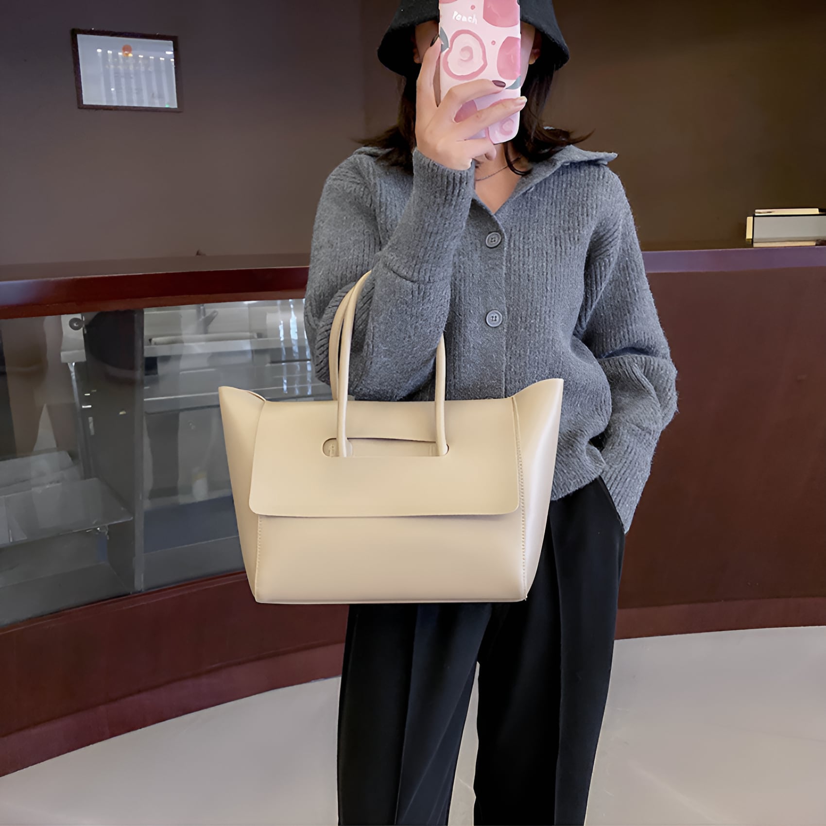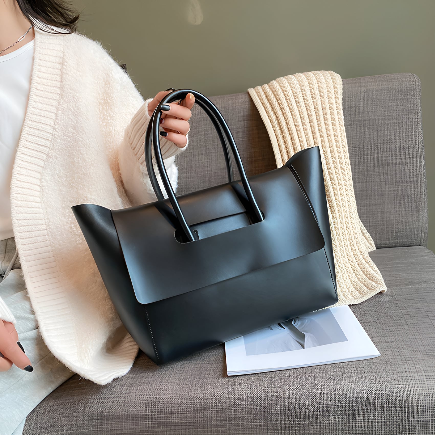 大容量ファッショナブルトートバッグは、スタイリッシュなデザインが魅力のアイテムです。ブラック、ブラウン、ライトカーキのカラーバリエーションは、シーンを選ばず使いやすく、普段使いからお買い物やお出かけ、旅行まで幅広く活躍します。このトートバッグは、あなたのファッションに洗練さを添え、毎日のスタイルを一層引き立てる優れた選択肢です。ぜひこちらのバッグを手に取って、あなたのセンスを存分にアピールしてみてください。